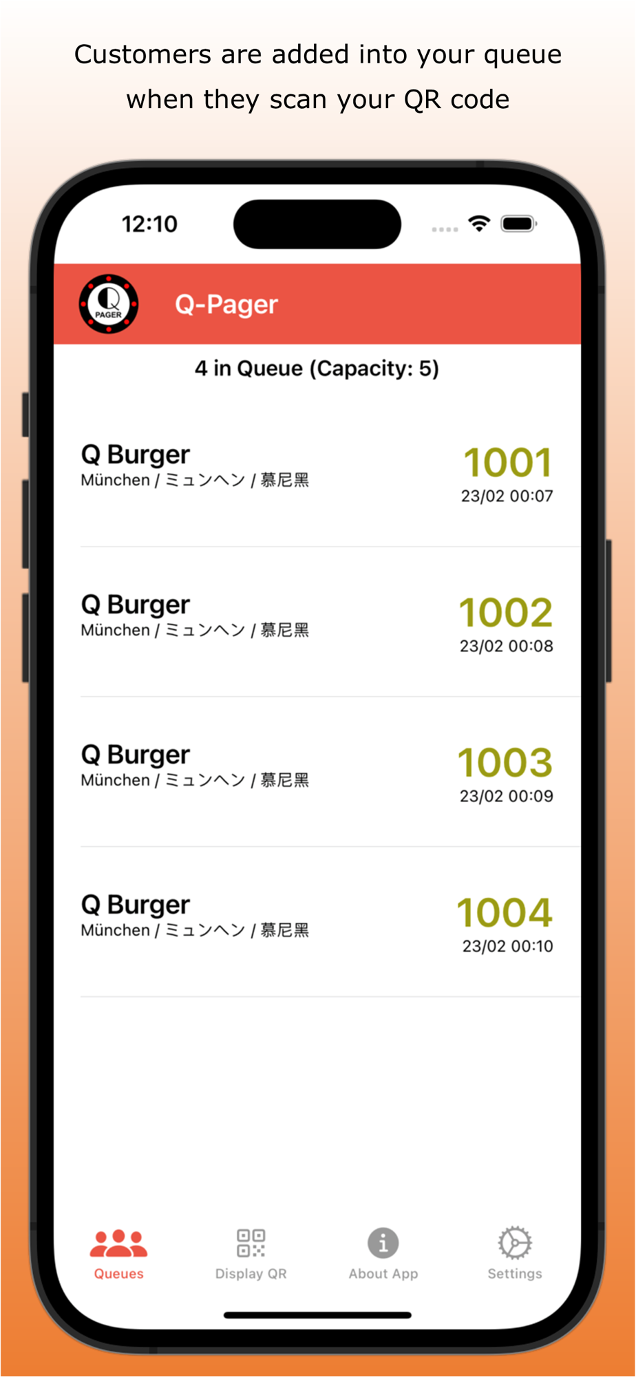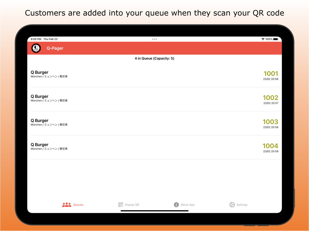 Your customers simply scan the QR code using their mobile phones to join your queue. They do not need to download any app to use Q-Pager.