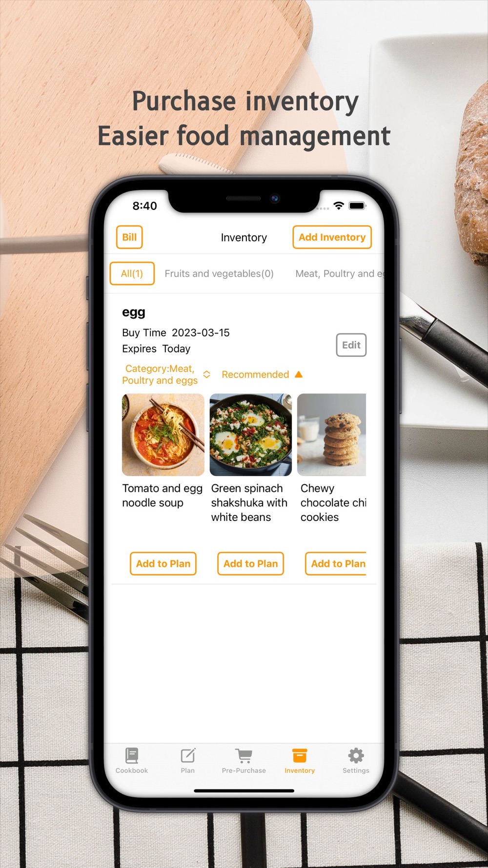 7. Inventory management, help you record the shelf life of the ingredients, and ask you to eat the current ingredients as soon as possible, no waste!