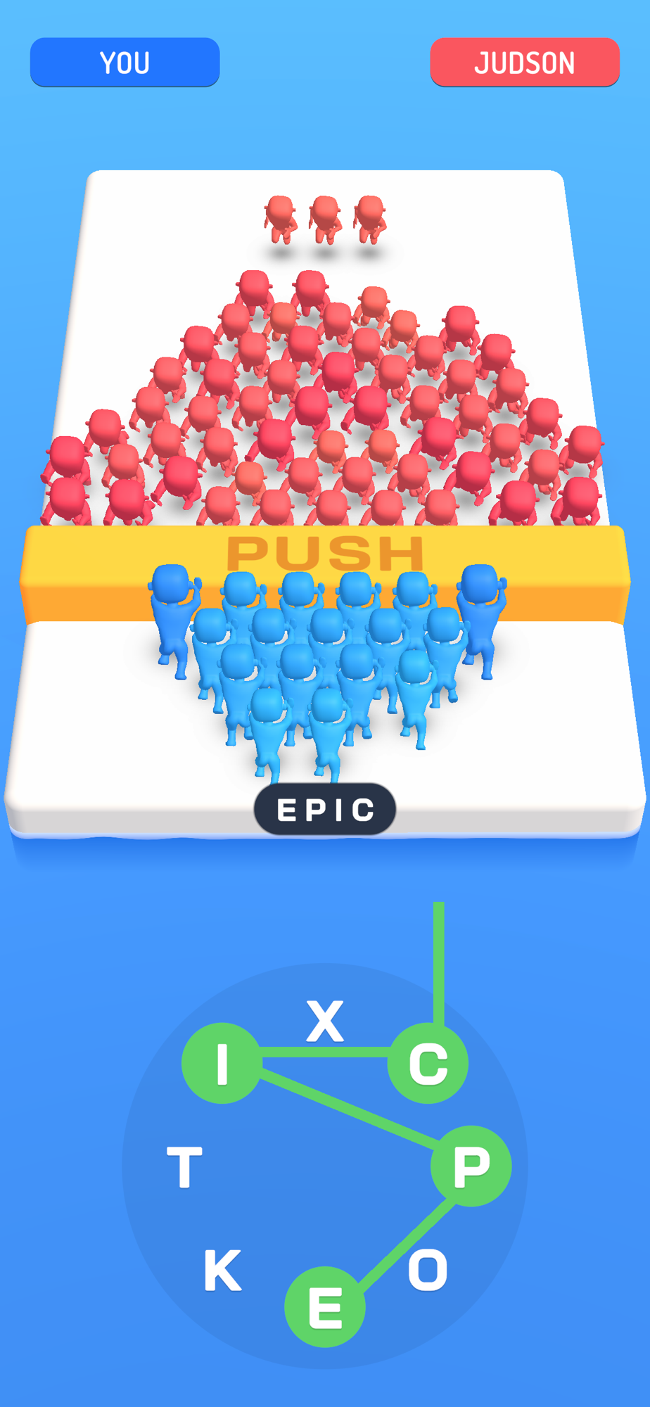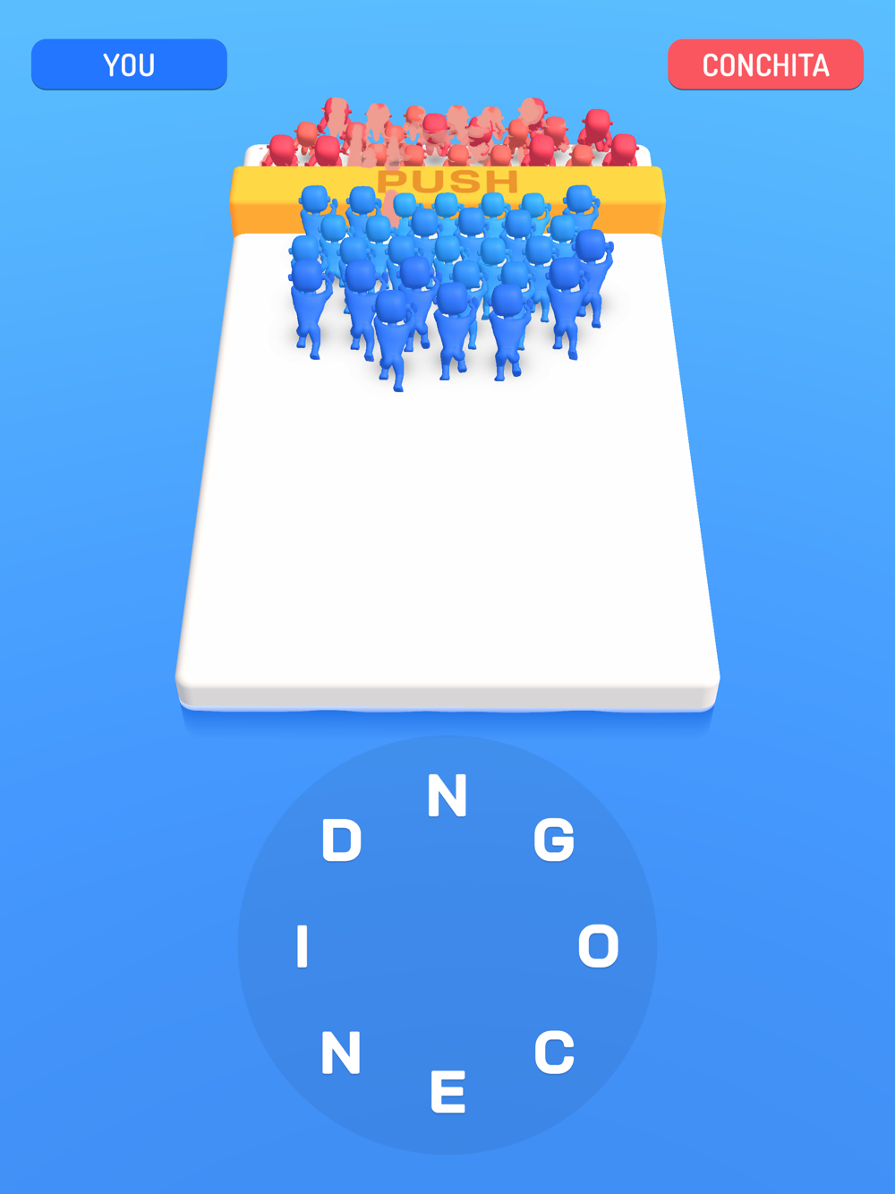 You are given a board with letters, and you must create words by swiping your finger across the letters. Each word will form an army. The longer the word, the stronger your army. Your objective is to push all enemies off the platform and into the water to win.