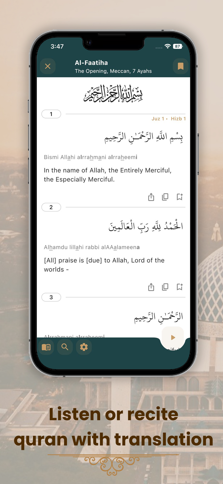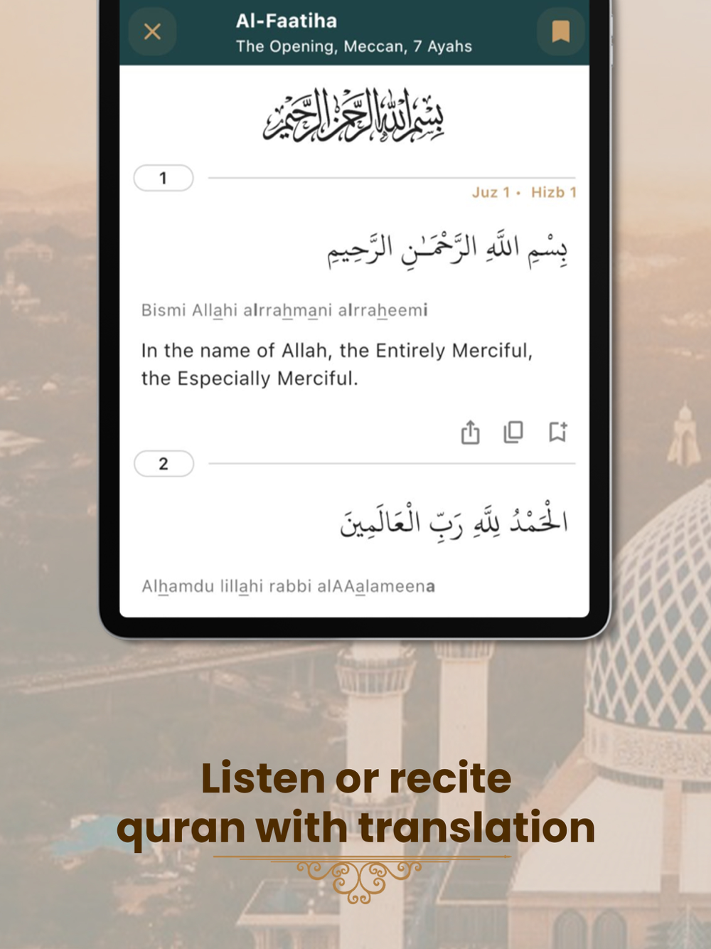 - Listen to Quran audio for several reciters. (Coming Soon)