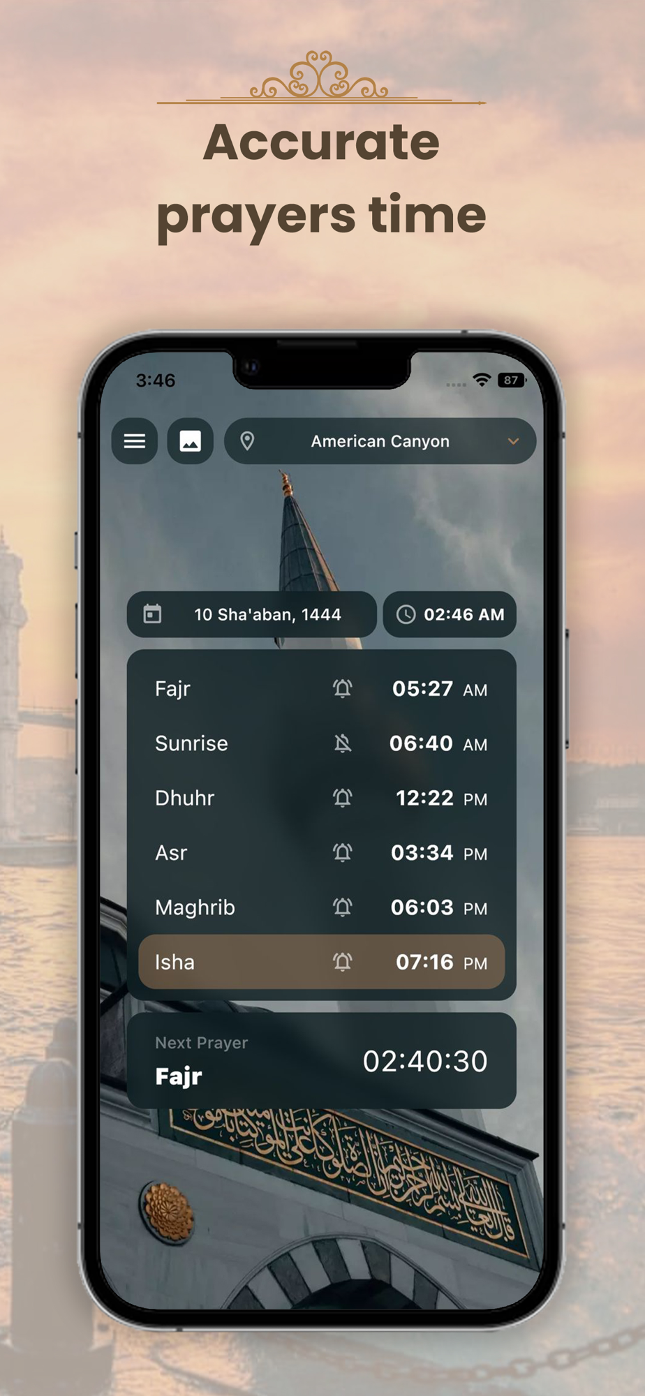 - The Muslim Assistant app allows you to check the prayer times for the whole month.