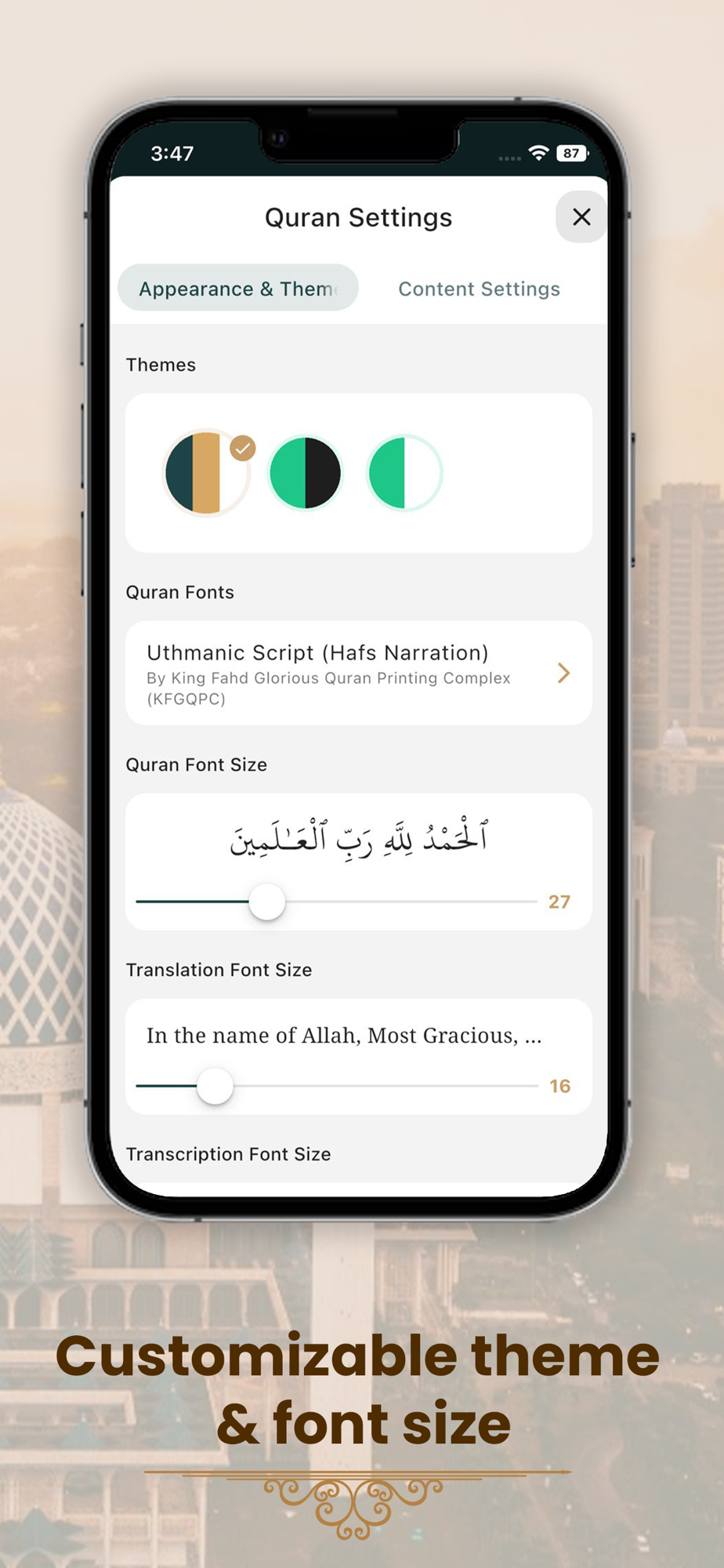 - Read the Holy Quran with the original font as well as other popular fonts.