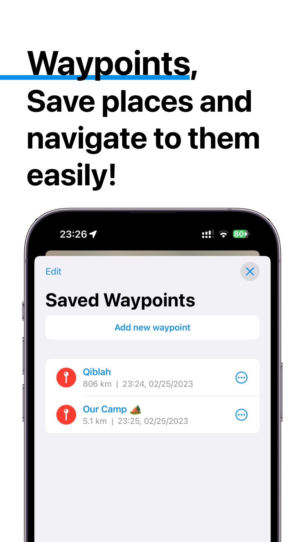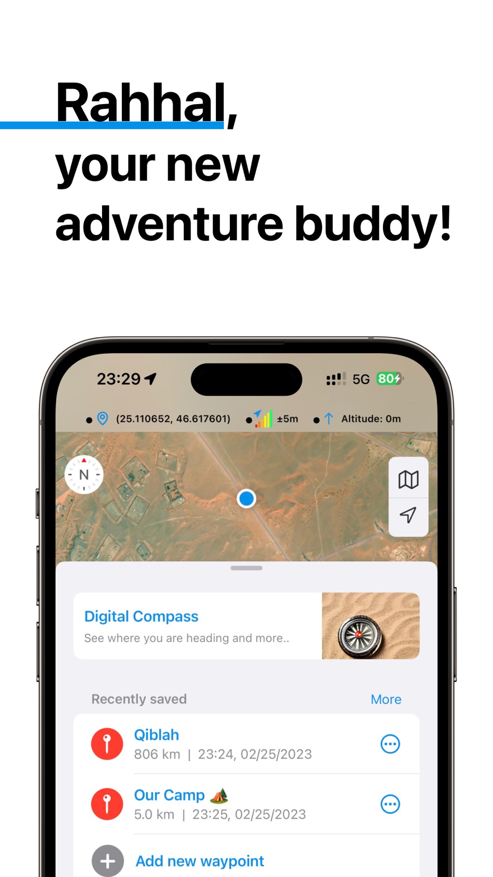 Rahhal displays your current altitude, so you can keep track of your elevation as you explore the desert. And if you're looking for a way to measure distance and speed, Rahhal has you covered. With the ability to draw a straight line between your current location and your target waypoint, and view an arrow and heading to your waypoint, you can easily calculate the distance and your current speed.