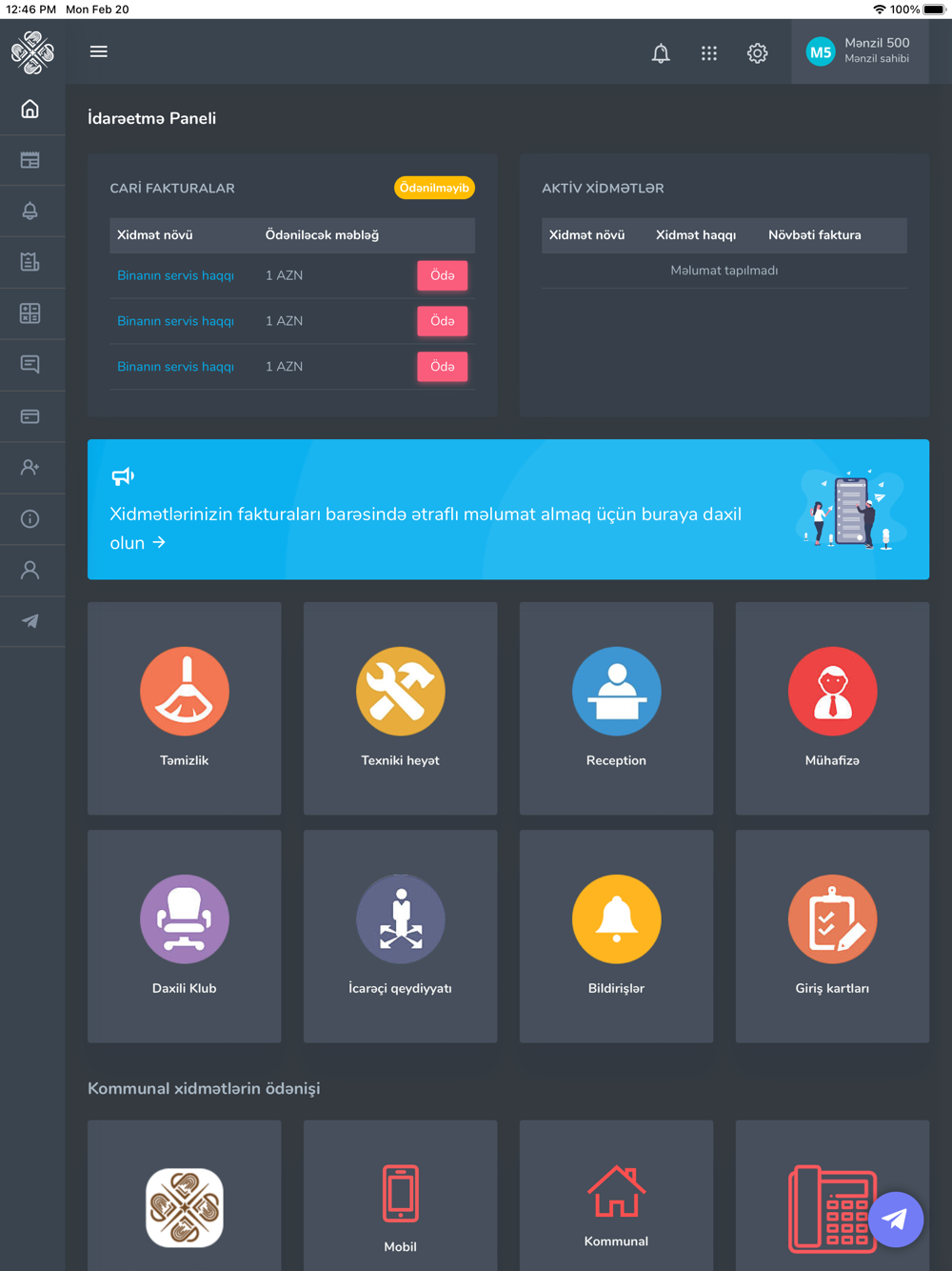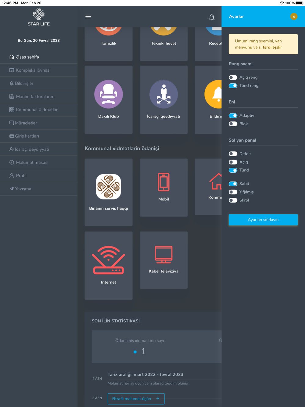“Star Life Residence” konsyerj xidmətindən istifadə edib şəxsi kabinetinizə daxil olarag, aşağıdakı onlayn xidmətlərdən yararlana bilərsiniz: