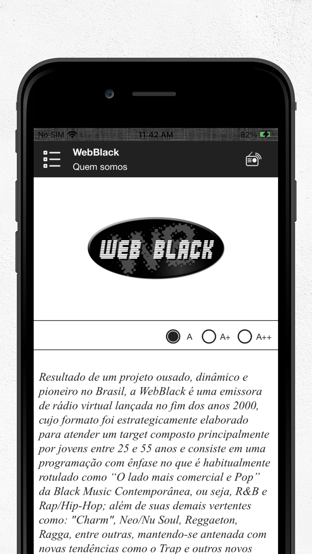 Resultado de um projeto ousado, dinâmico e pioneiro no Brasil, a WebBlack é uma emissora de rádio virtual lançada no fim dos anos 2000, cujo formato foi estrategicamente elaborado para atender um target composto principalmente por um público entre 25 e 55 anos e consiste numa programação com ênfase no que é habitualmente rotulado como “O lado mais comercial e Pop” da Black Music Contemporânea, ou seja, R&B e Rap/Hip-Hop; além de suas demais vertentes como: "Charm", Neo/Nu Soul, Reggaeton, Ragga, entre outras, mantendo-se antenada com novas tendências como o Trap e outros novos caminhos da música, entregando assim uma experiência sem igual para o ouvinte.