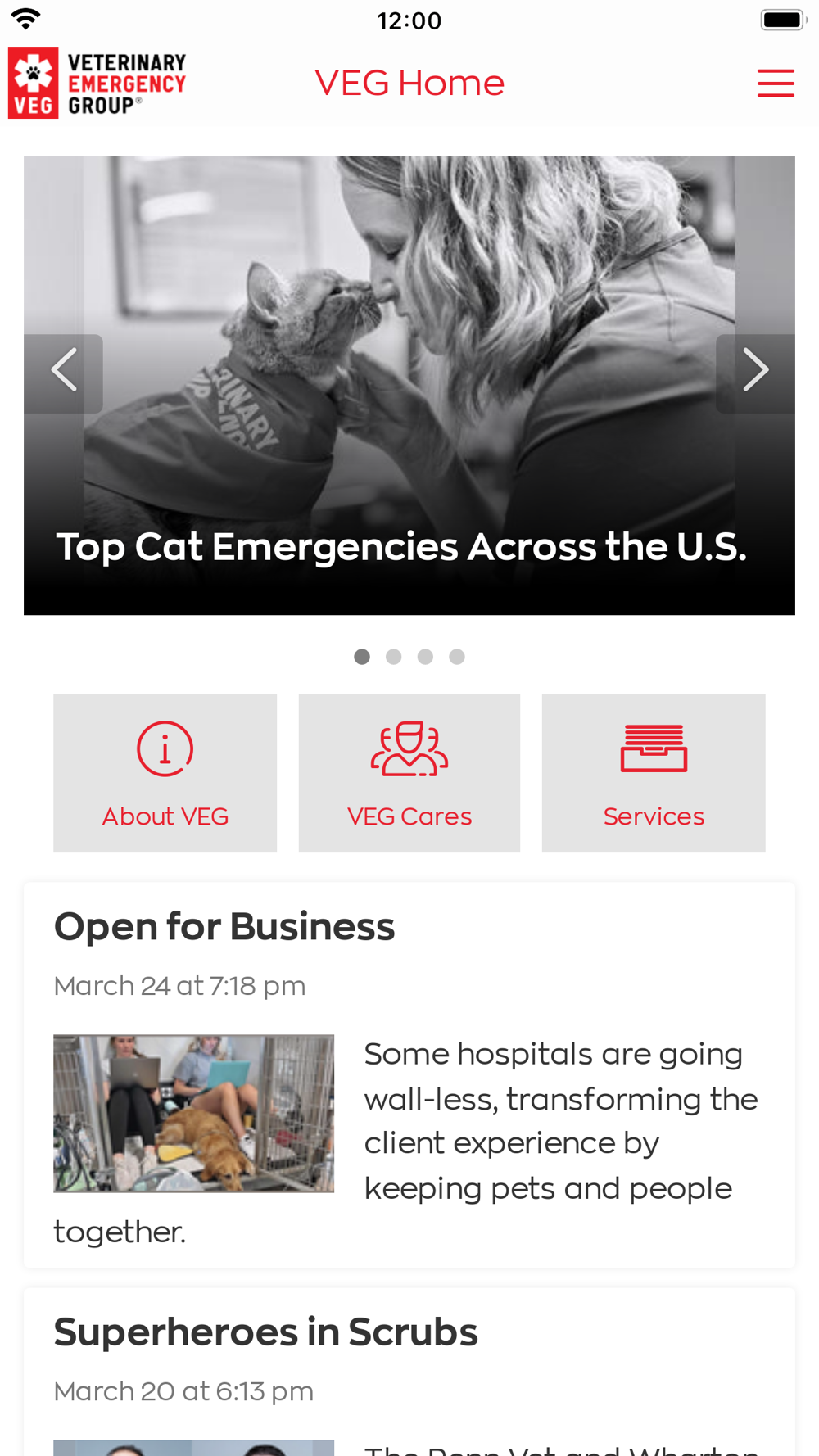 Veterinary Emergency Group (VEG) has revolutionized pet emergency care by changing the way veterinary medicine has always been done. VEG provides a unique customer experience that works best for people and their pets. Exceptional care is provided in VEG hospitals throughout the United States by a highly trained, emergency-focused staff. Triage by a doctor begins immediately, the staff engages with the pet parent within an open floor plan hospital, and customers can stay with their pets through the entire care process.