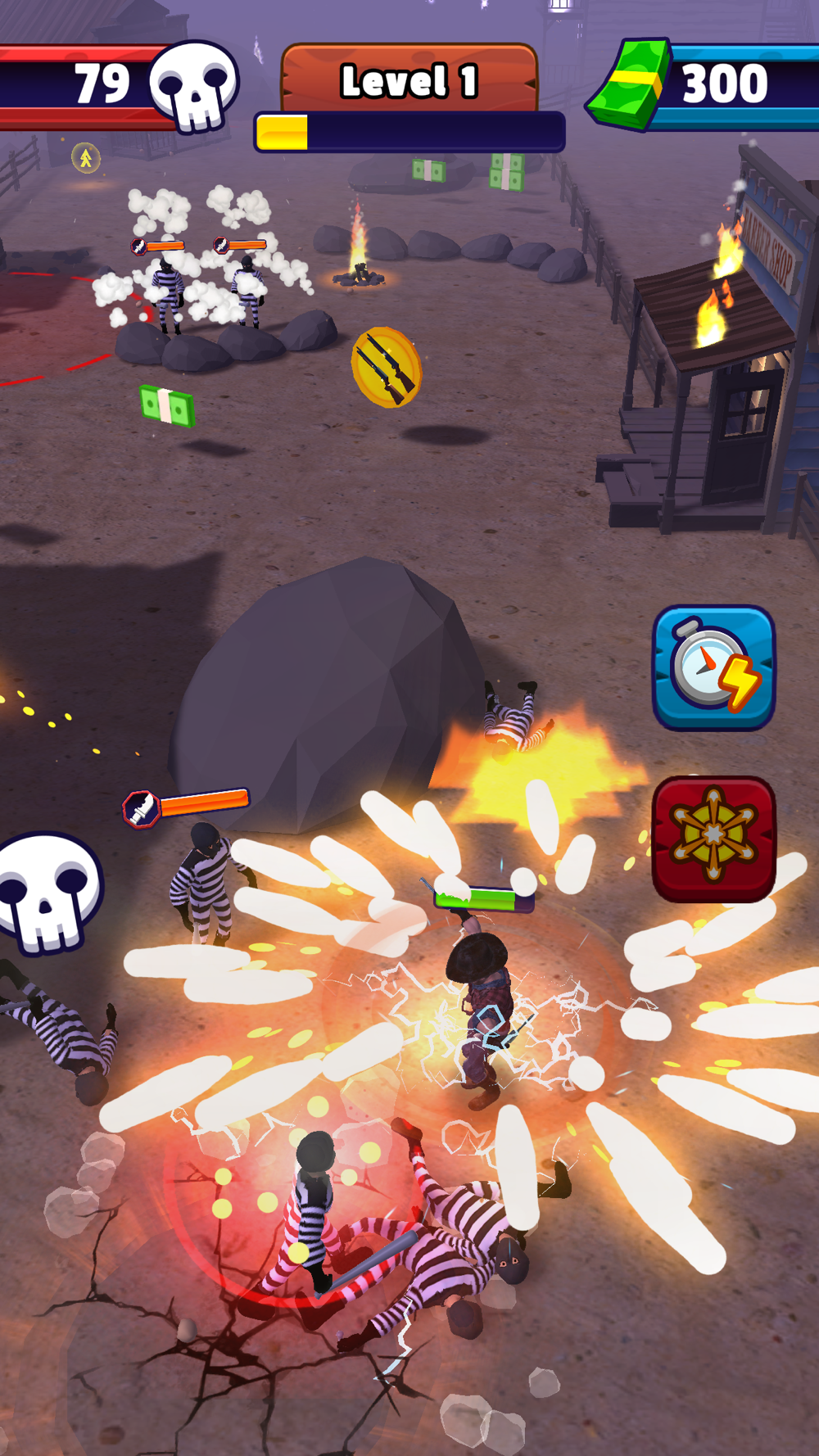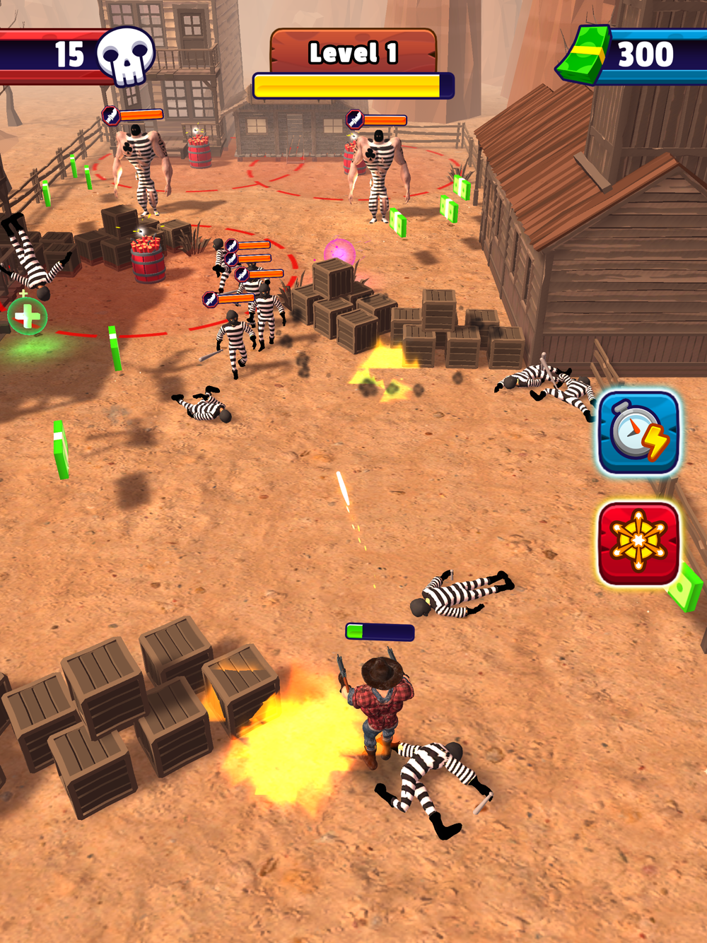 Collect pickups to earn powerful boosts and improve your firepower! Can you beat the boss and earn the gratitude of everyone in town?