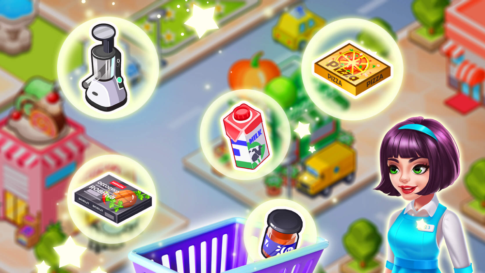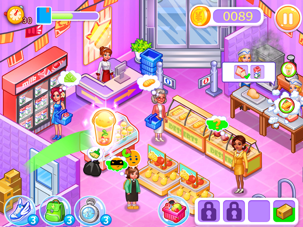 • Experience the fun of supermarket operation, put commodity shelves, ensure the needs of guests, prepare materials to make bread, etc.