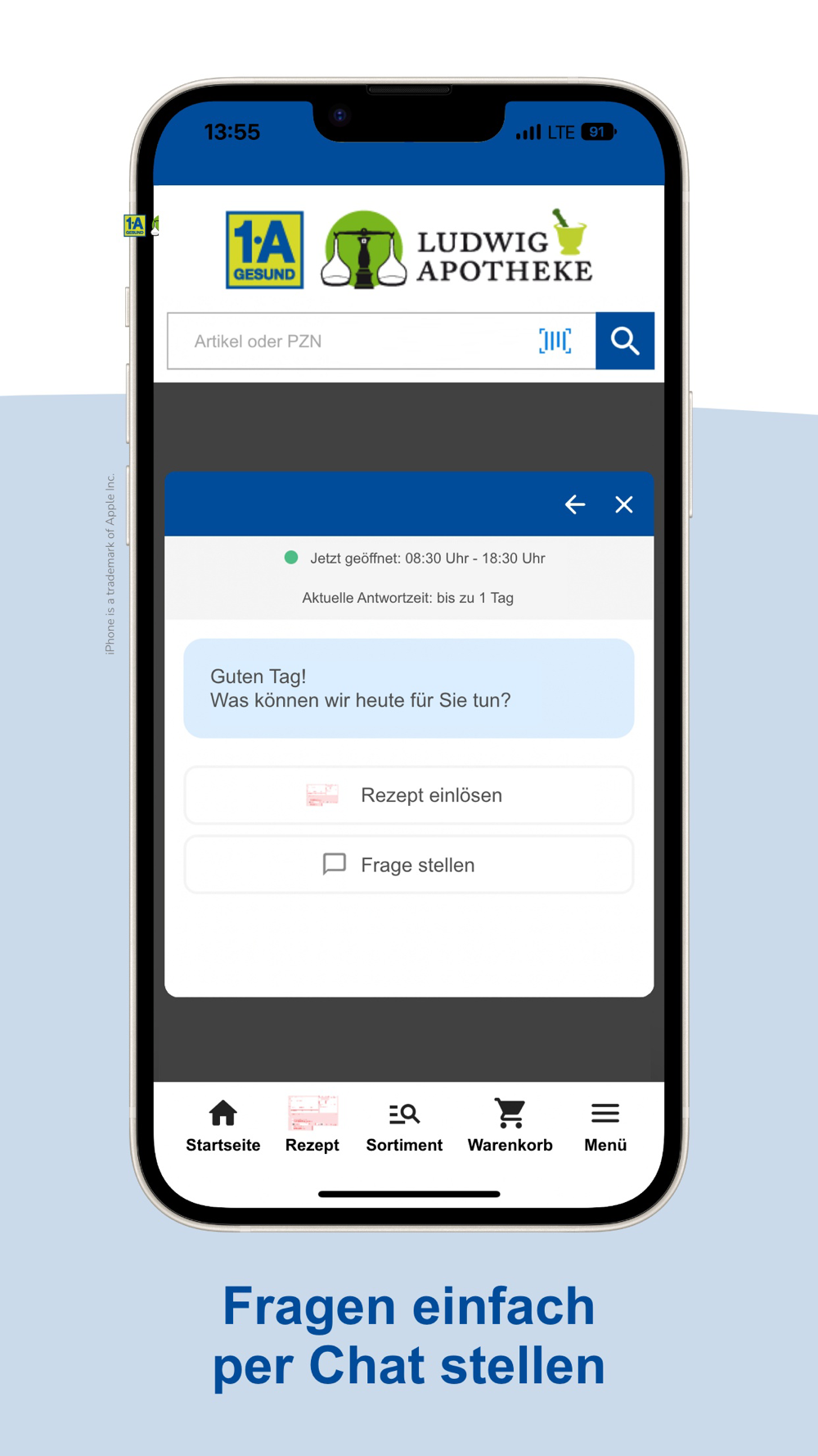 Wir bieten Ihnen über die App unser gesamtes Sortiment. Nicht sofort verfügbare Produkte bestellen wir für Sie und machen Sie in der Regel bis zum nächsten Werktag abholbereit. Gerne liefern wir Ihnen Ihre Bestellung per Botendienst direkt nach Hause.