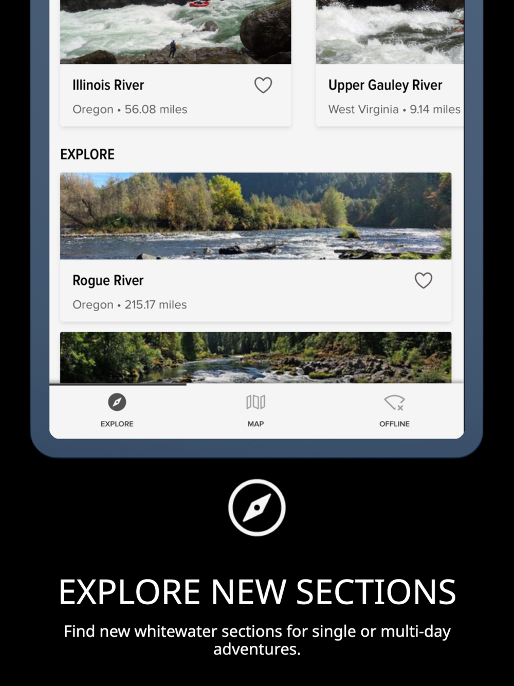 Navigate with ease through detailed interactive 2D and 3D maps, accessible both online and offline. Choose from Satellite, Outdoor, and Street map modes, measure distances in river miles, and set location-based alerts for upcoming take-outs, campsites, or rapids.
