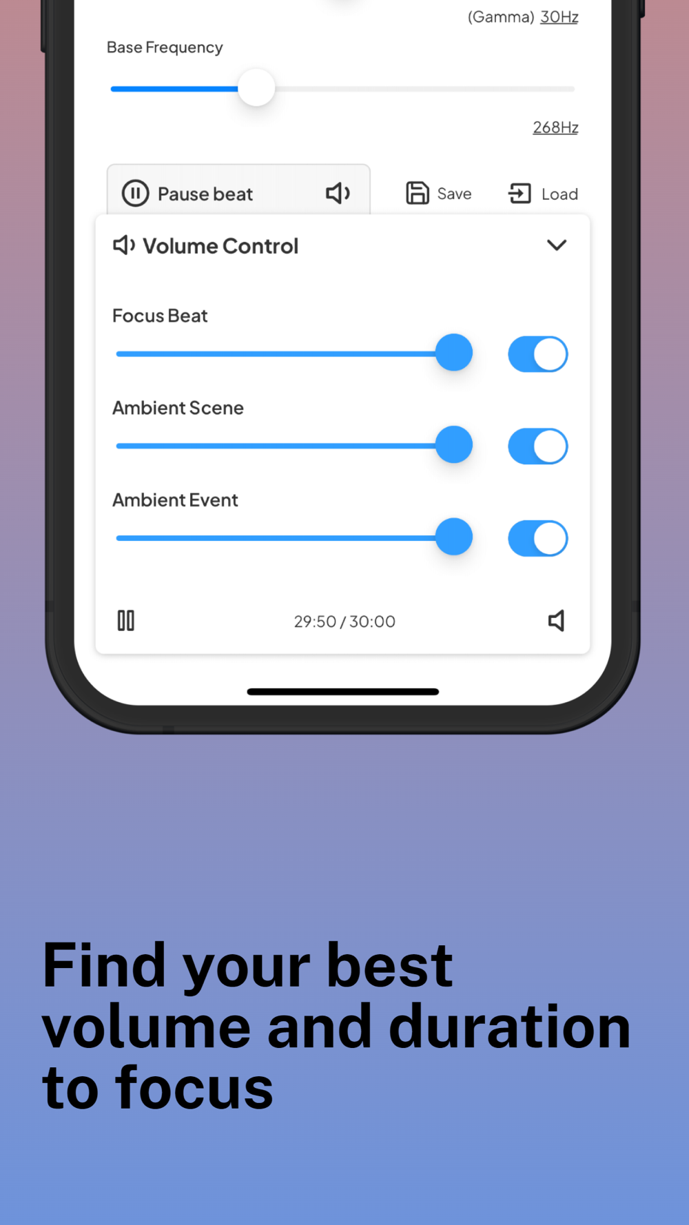 - Concentration (Beat Frequency: 30Hz, Base Frequency: 268Hz)