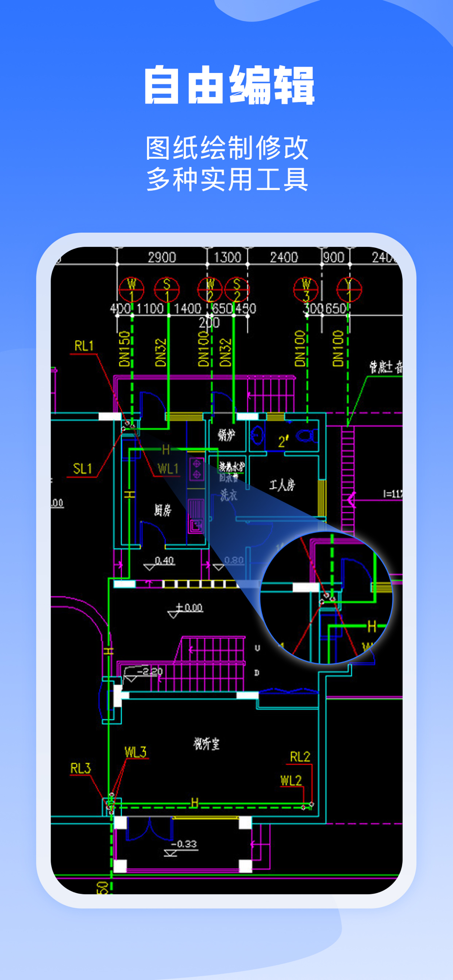 1. 快速看图:支持导入多种格式的CAD图纸,包括dwg/dxf/dwt等,快速在手机上预览CAD图纸,各种平面图纸随意查看,解除看图限制。