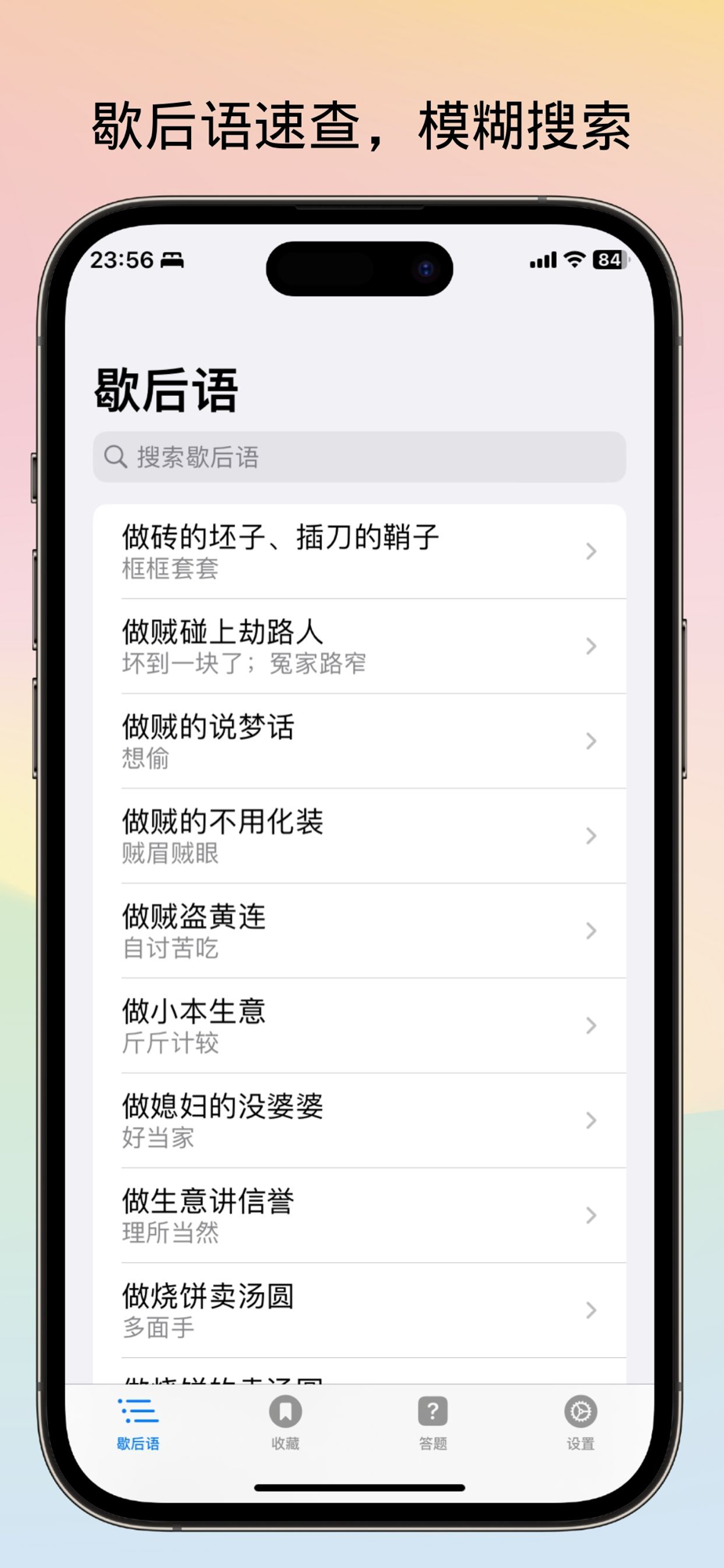 - Support the quick search of allegorical sayings, and enter any keyword of the question or answer to search