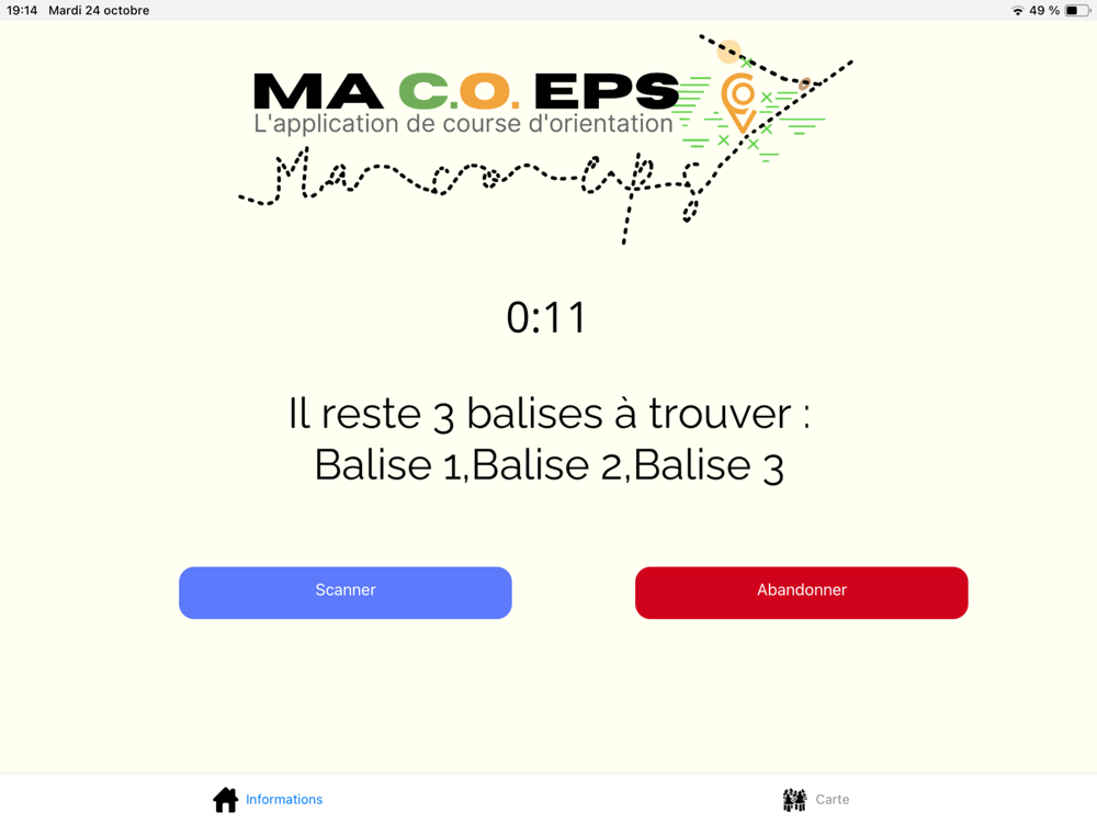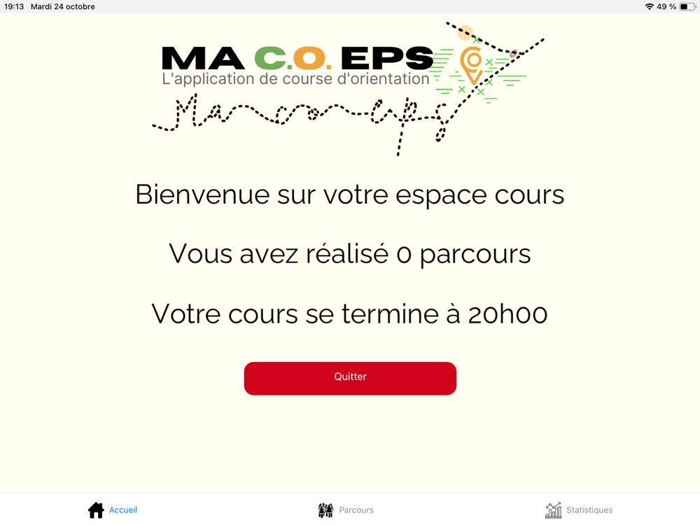 Cette application permet au professeur de superviser les élèves lors des cours de sport de course d'orientation.