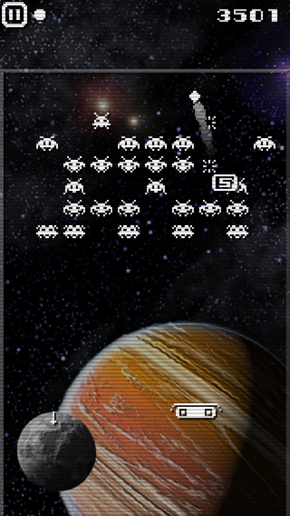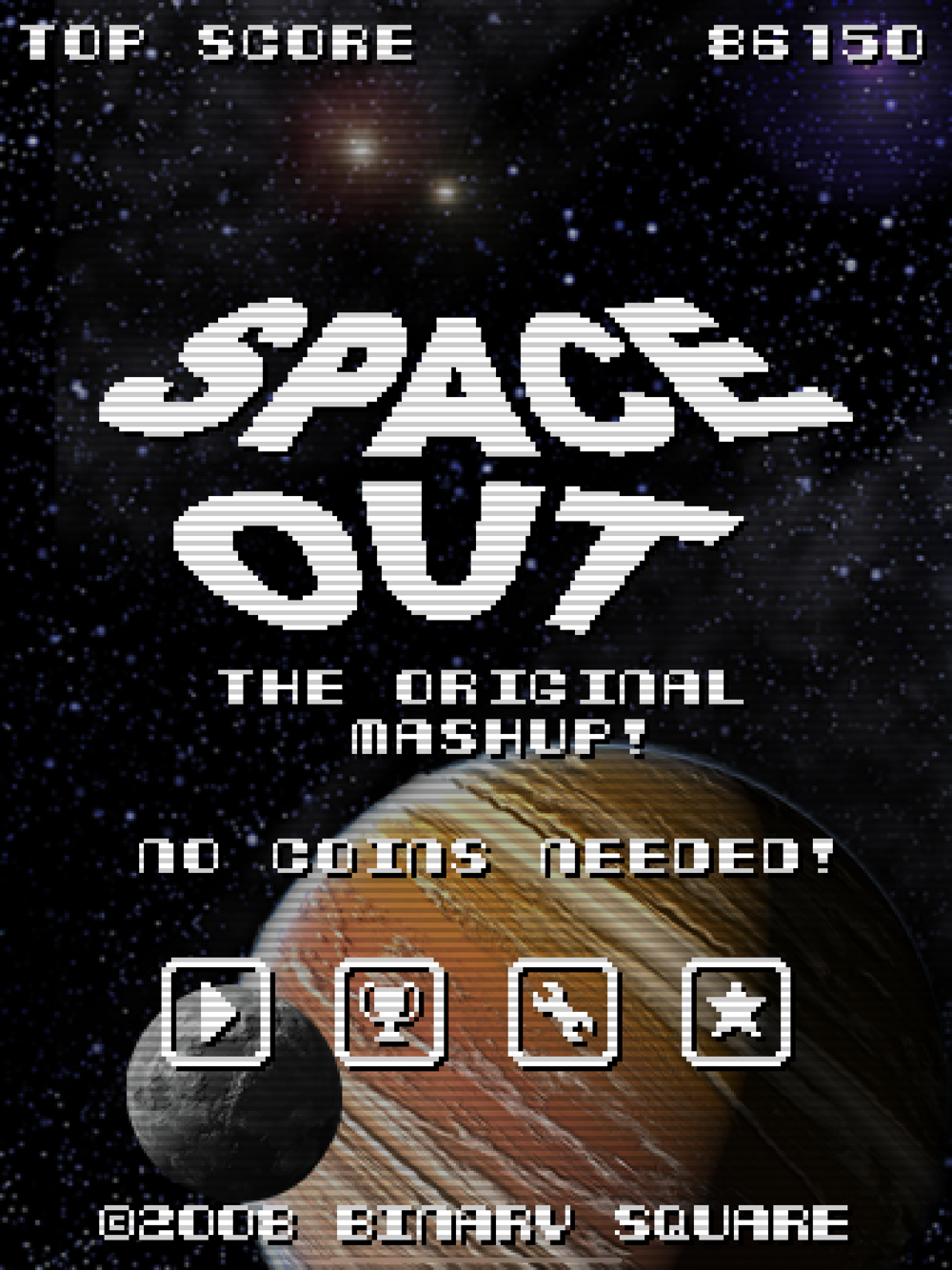 Space Out is the original mashup, a tribute to old school arcade games; it truly delivers that early arcade feel. It combines 2 classic game concepts, shooting invaders and brick breaking, into a unique and exciting retro experience. It's a blast back to the late '70s. Complete with all new 8-bit sound effects created with a MOS 6581 SID chip from the Commodore 64 and speech generated with 8kHz 8-bit allophones. (Any control issues were fixed years ago.)