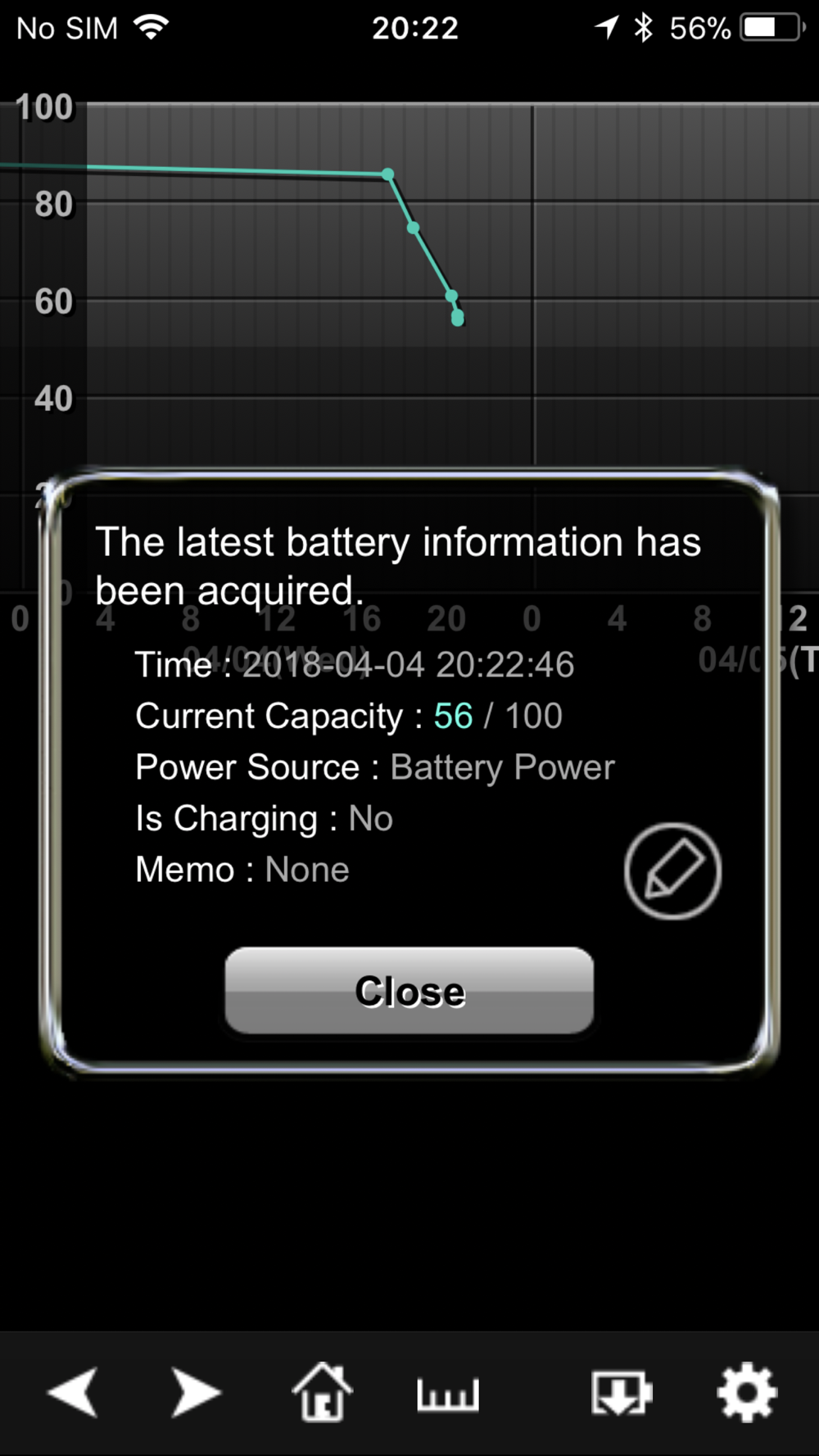 1. "BatteryLog" is not capable of auto-updating. To get the latest data, you must launch application by yourself.