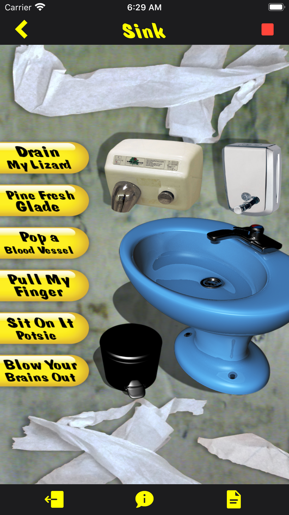 iToilet is the first fully (well almost fully) functional toilet for the iPhone. iToilet includes 22 ultra-realistic toilet/bathroom sound effects such as "Bean Burrito", "Drank Too Much" and "Like a Race Horse.