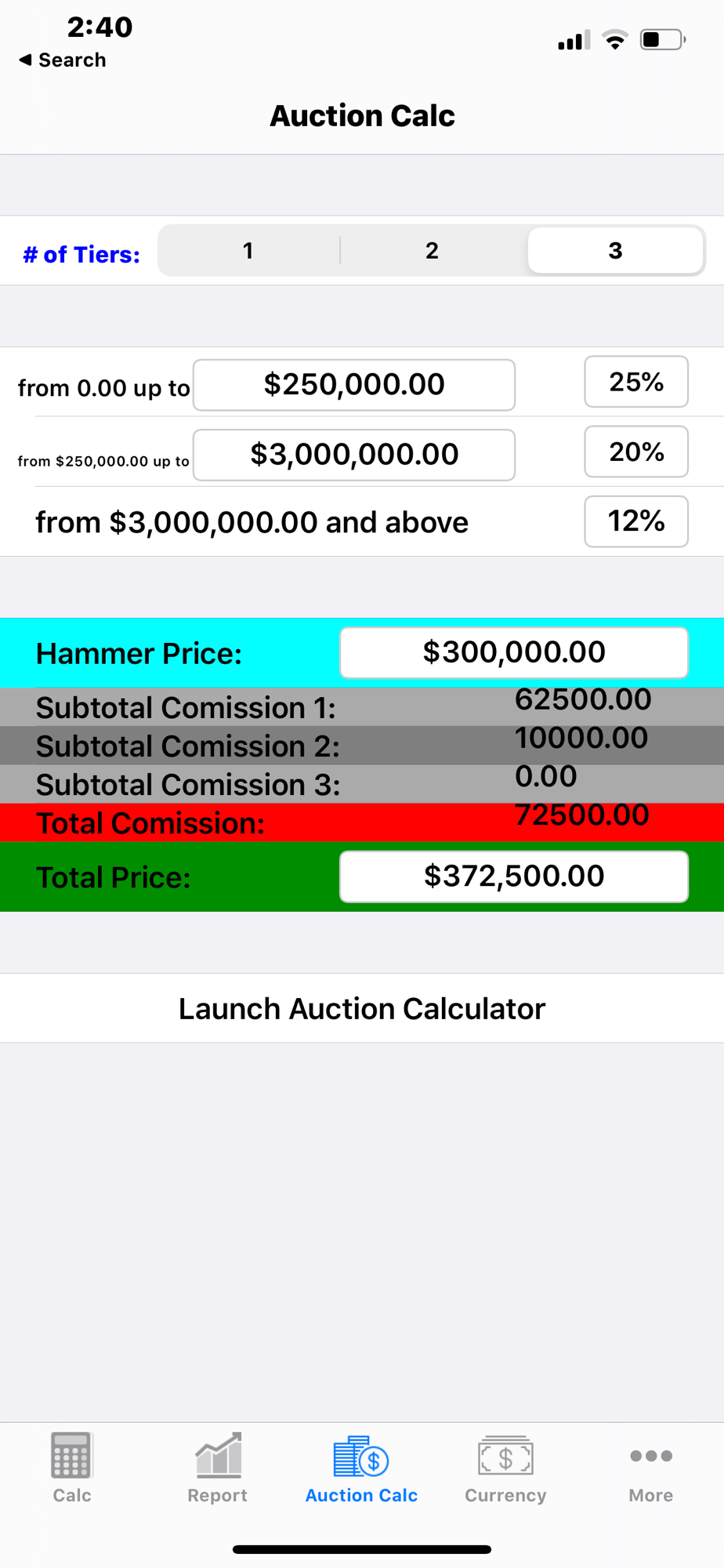-HOT: Auction Calculator. Supports 1,2, or 3 tiers.