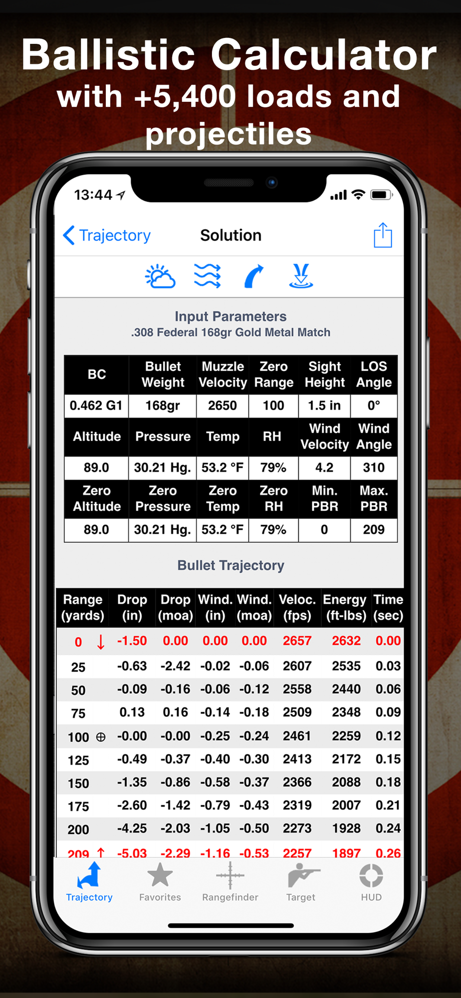 Ballistic is a highly-accurate ballistic calculator and range companion. With its advanced capabilities, Ballistic can calculate for atmospheric conditions, Coriolis effect, gyroscopic spin, and more. It's also much more. With a vast library of nearly 5,000 projectiles and factory loads, rangefinder, range log, and head-up display, Ballistic is a complete mobile companion for hunting or at the range.