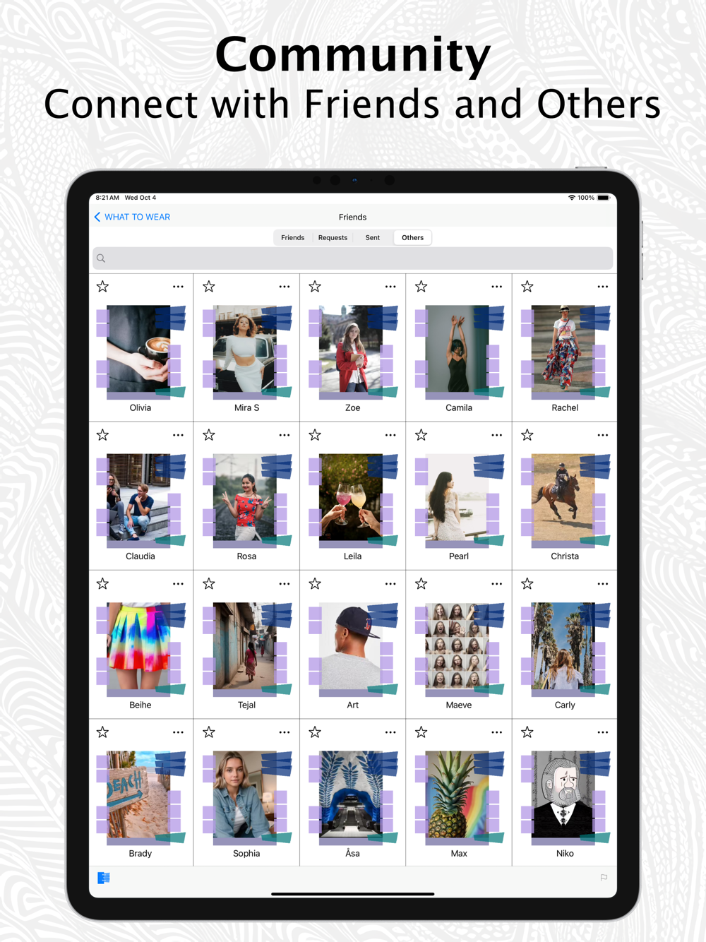 Simply catalog your wardrobe using your iPhone or iPad by taking photos of them and let AI figure out what you have. The more you add, the better it understands your clothing and your style. Then you hare your closet with others; add friends or follow people whose style you like.