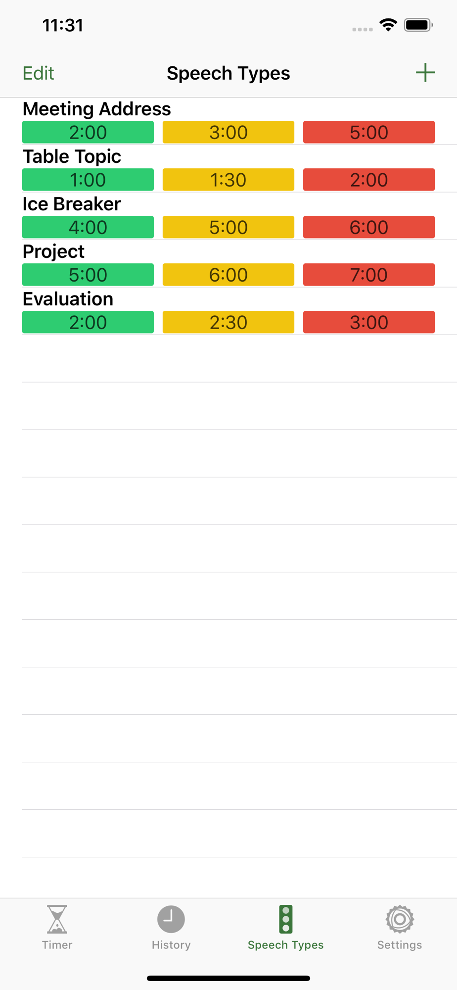 Speech Timer helps you to keep your orators in check and effortlessly deliver the Timer's reports. Say goodbye to staring at the stopwatch during club meetings and hello to enjoying your colleagues' speeches.