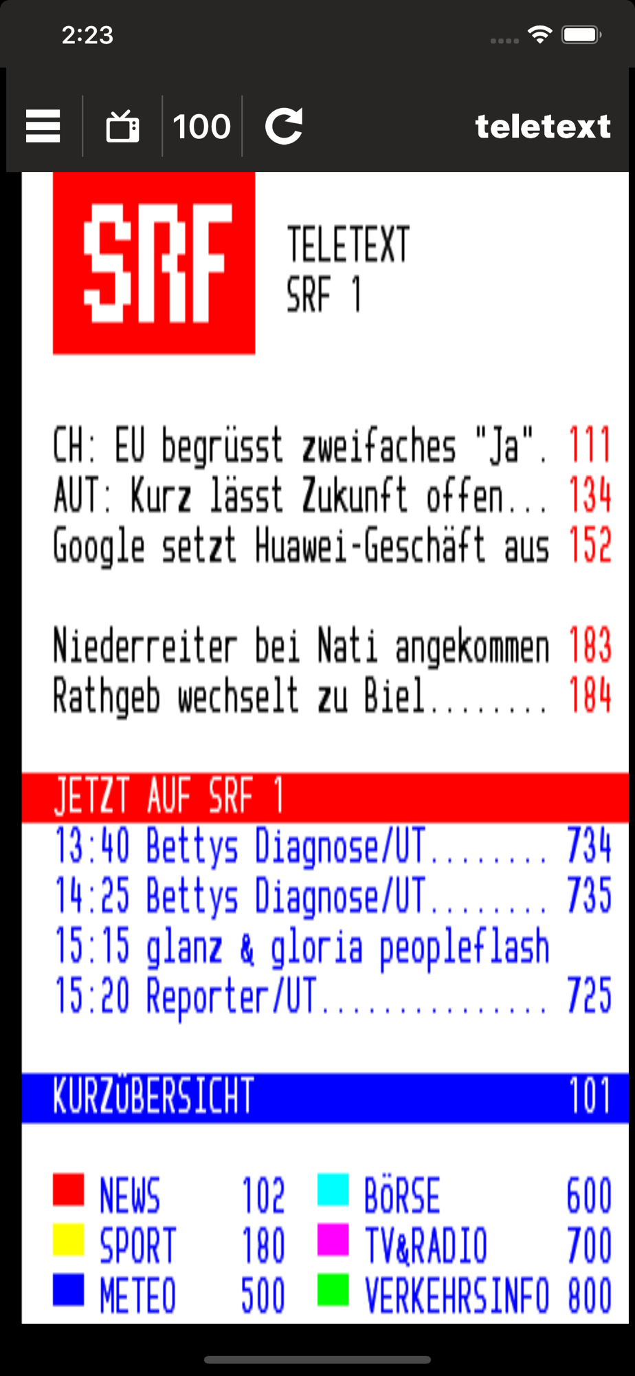 Die wichtigsten News aus Politik und Wirtschaft, aktuelle Sportresultate, umfangreiche Finanzinformationen und vieles mehr gibt es auch fürs iPhone. Die TELETEXT iApp ist schneller und genauso aktuell wie der echte TELETEXT im Fernsehen.