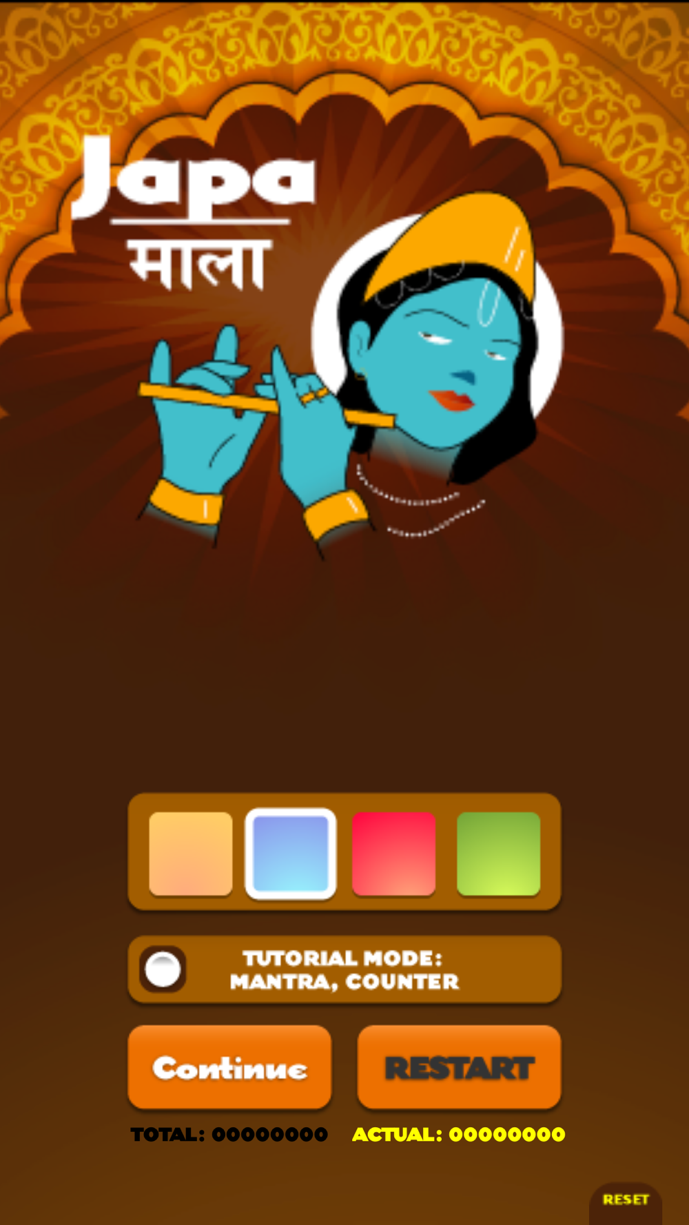 You will find two counters: "total" that tells you how many mantras you have said, and the "actual" that can be reset.