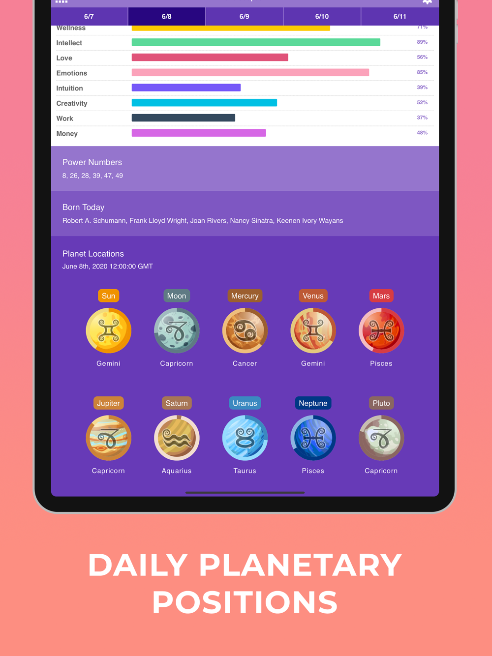 DAILY HOLISTIC PREDICTIONS: Beyond romance, receive comprehensive guidance on wellness, intellect, emotions, intuition, creativity, work, and money to enrich all aspects of your life.