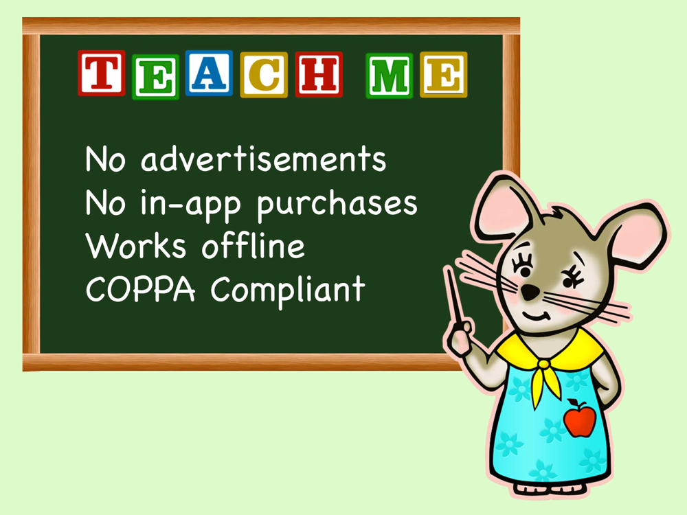 The simple and intuitive user interface is designed to be preschool friendly, which allows children to play without help from an adult. An animated teacher (Mimi Mouse) gives verbal instructions and feedback to the child which makes learning fun.