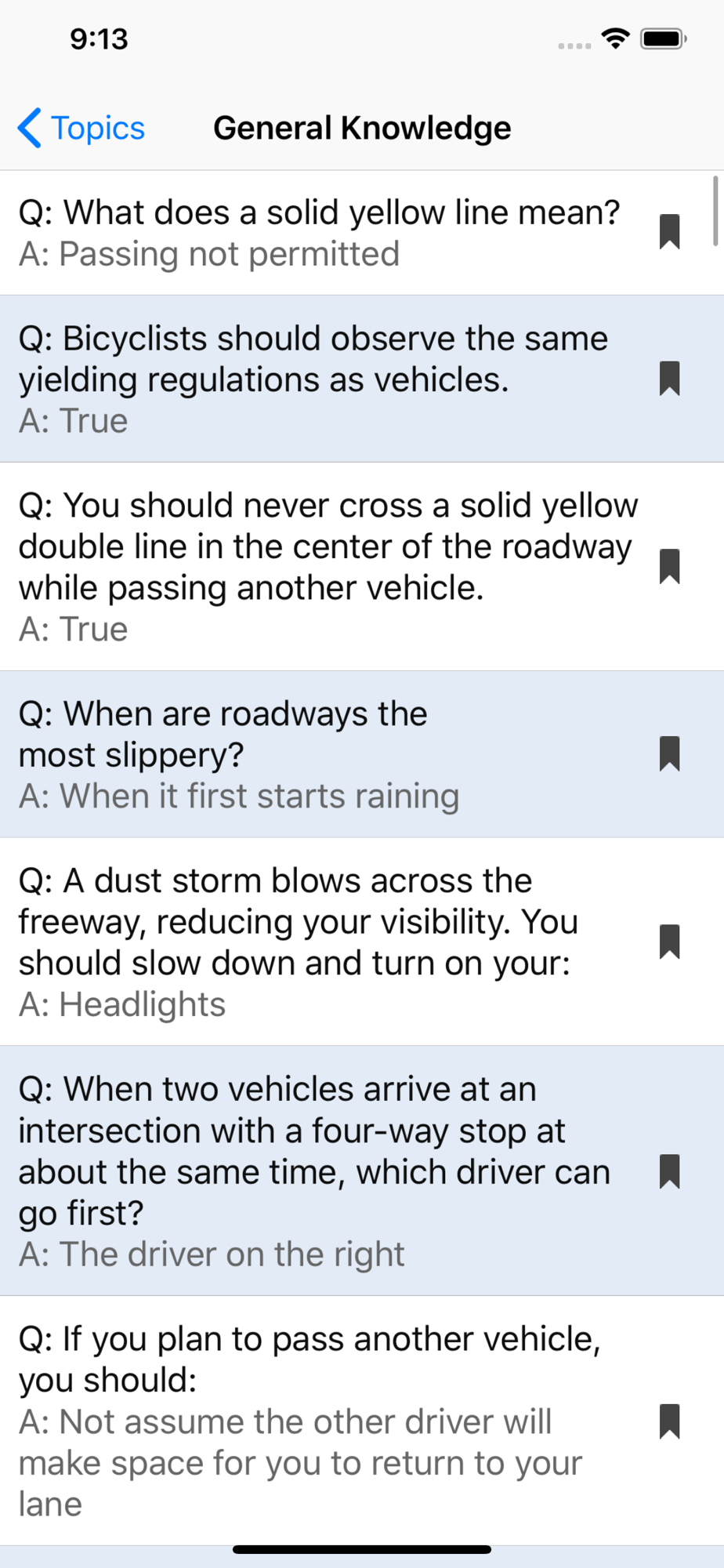 - Bookmark questions for later study