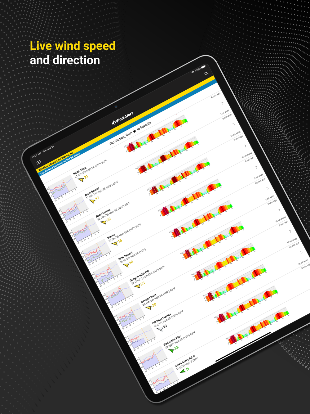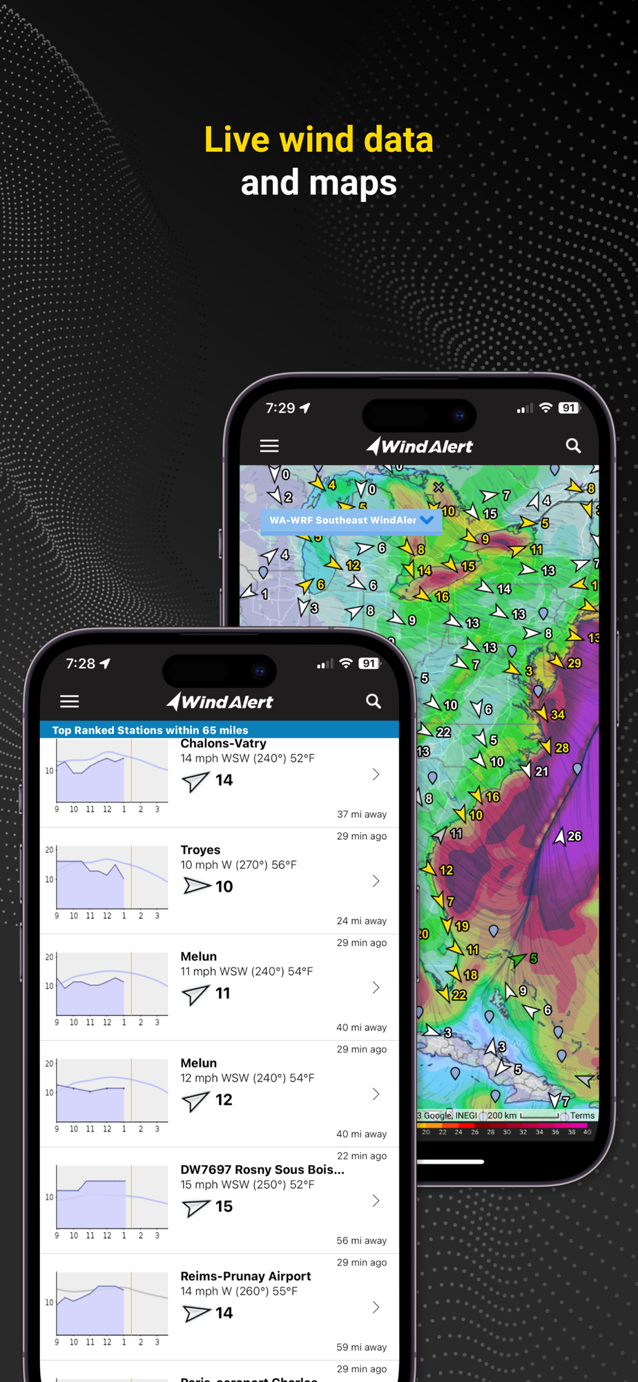 WindAlert gives you the weather in your neighborhood, from observations onsite or right next door. With over 65,000 proprietary Tempest Weather Systems deployed, get real-time local data right where you are. Advanced forecasts provide the most accurate Nearcast data to our customers. Beyond our unmatched proprietary data, we supplement with data from government agencies including NOAA and NWS, and bring in data sets including the AWOS, ASOS, METAR, and even CWOP. Radar and forecast maps, along with customized point alerting are included to provide a broad view of the weather.