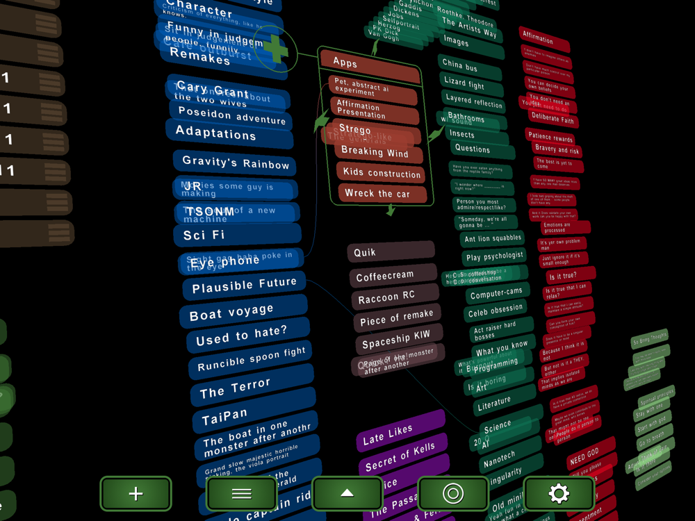 Create hierarchical lists of items -- children of children of children -- and doubletap to 'stack' them in space. Change their color and translucency. Connect related items with 'link' lines. It's heavy.