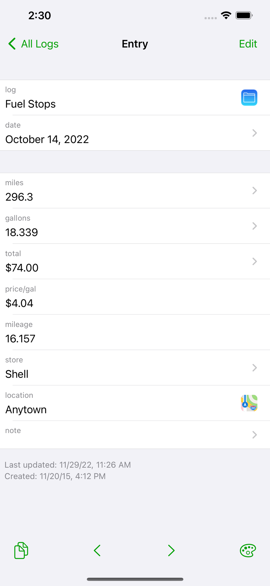 NOTE: The free version is fully functional but it limits you to 15 entries. A single one-time in-app purchase will remove the restriction on the number of entries you can enter.