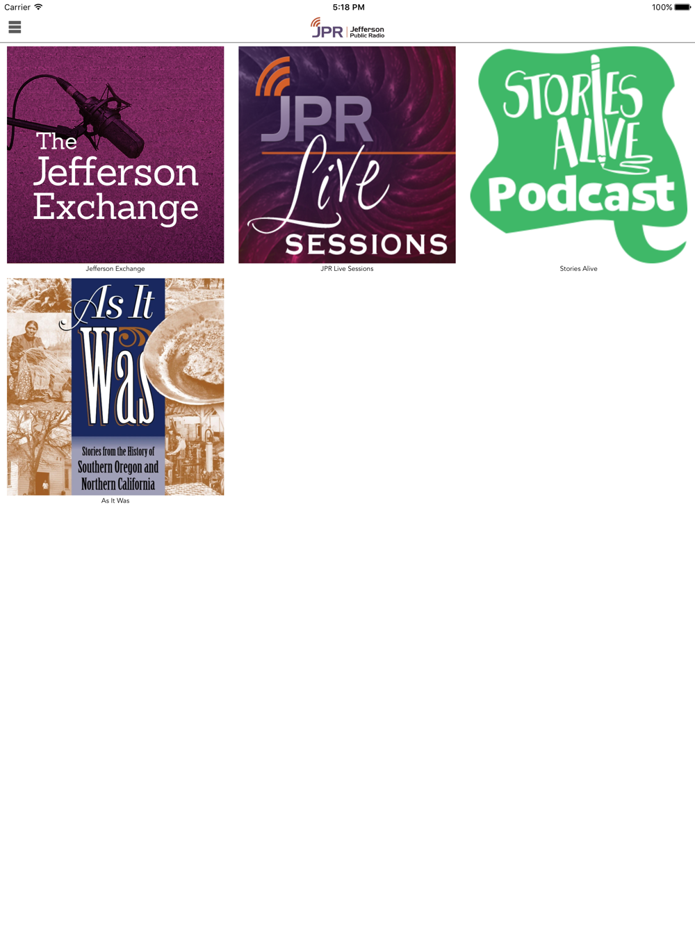 Jefferson Public Radio is a listener-supported public radio network dedicated to providing creative and thought-provoking programming for a wide variety of tastes. Our three different radio formats are available to stream on this app.
