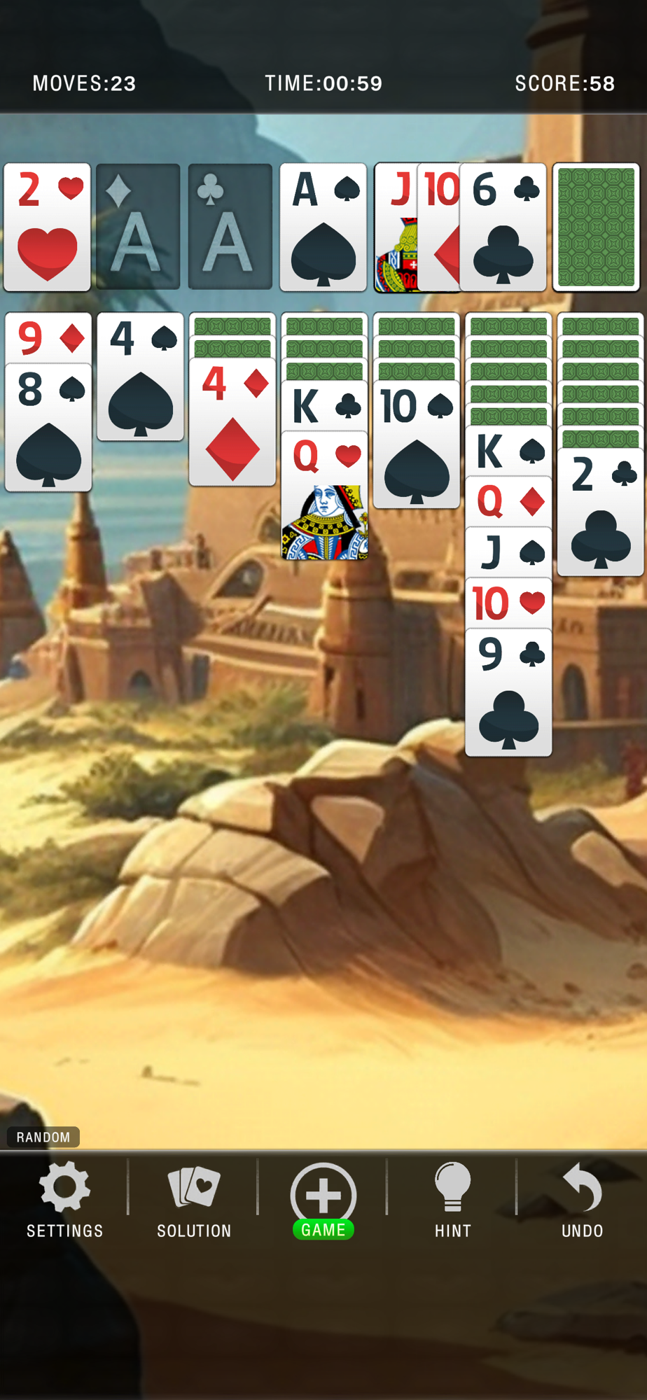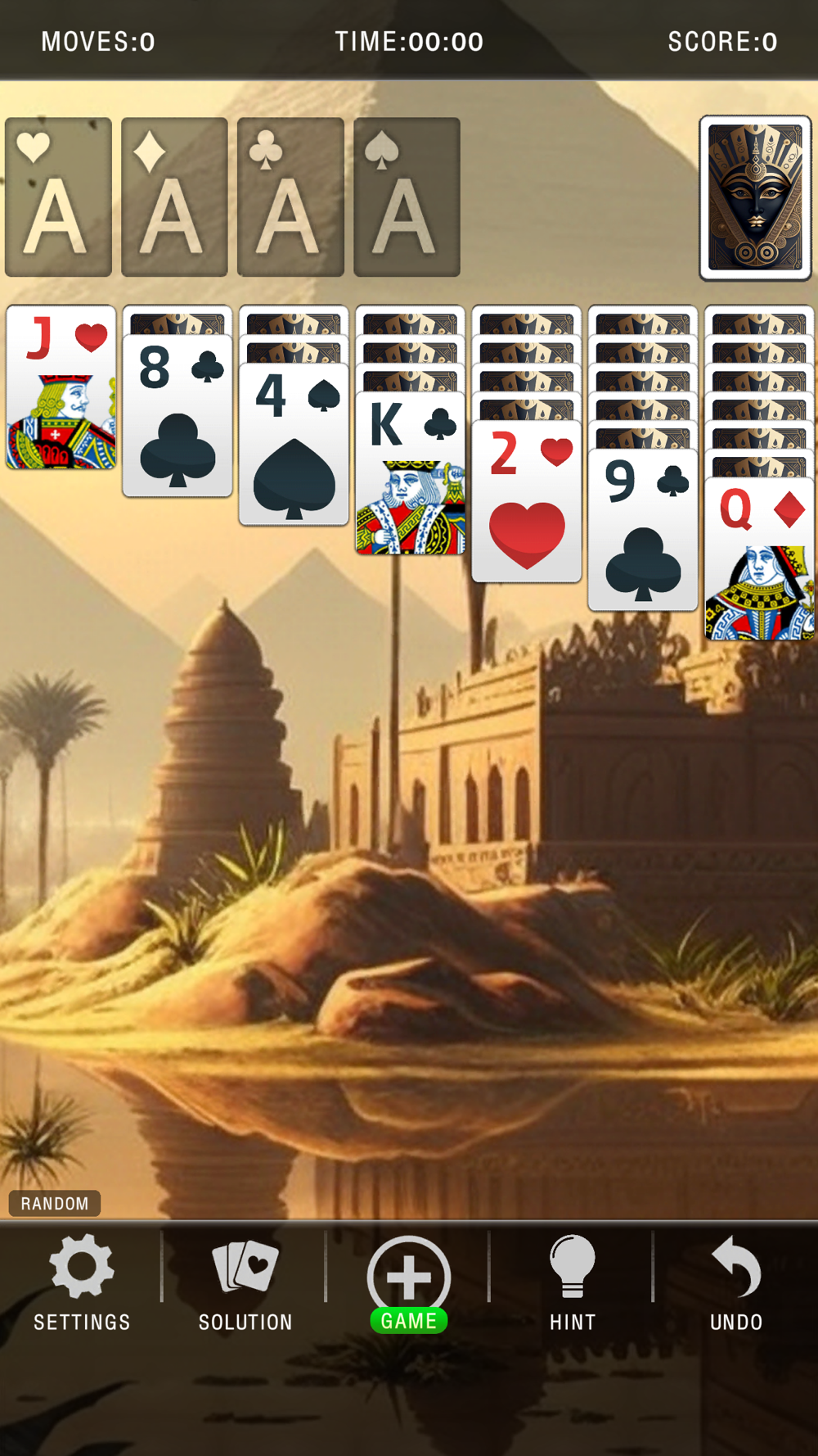 This game will take you on a journey through a captivating world of hieroglyphs and temples, while you play a classic game of solitaire.