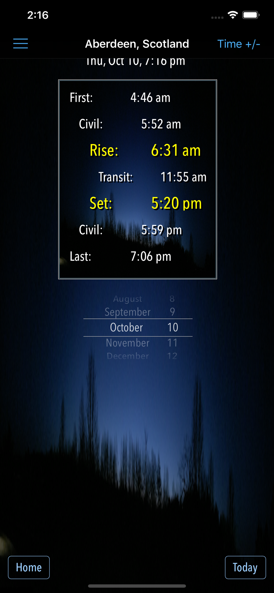 SunGraph is a sunrise and sunset calculator showing sunrise and sunset times for anywhere in the world and for any day of the year. For any latitude the earliest and latest sunrise and sunset times will be displayed. The analemma screen displays the equation of time along with the inclination of the sun above the horizon at transit. A world view shows the location of the sun on the Earth for the current time, or any day of the year. User locations can be created and saved.