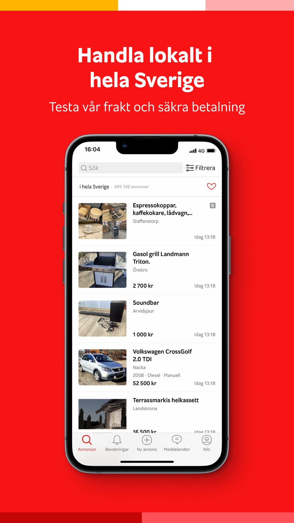 Köp och sälj begagnat enkelt i mobilen. På Blocket möts 5 miljoner användare varje vecka. Här hittar du alltifrån möbler och cyklar till bilar, båtar, elektronik och märkeskläder i hela landet. Det är enkelt och tryggt att köpa prylar på distans genom säker vår säkra frakt och betalning. Få pushnotiser på saker du bevakar eller när någon svarar på din annons och lägg enkelt in annonser direkt i appen. Ladda ner appen idag för att köpa och sälja begagnat, second hand eller nytt!