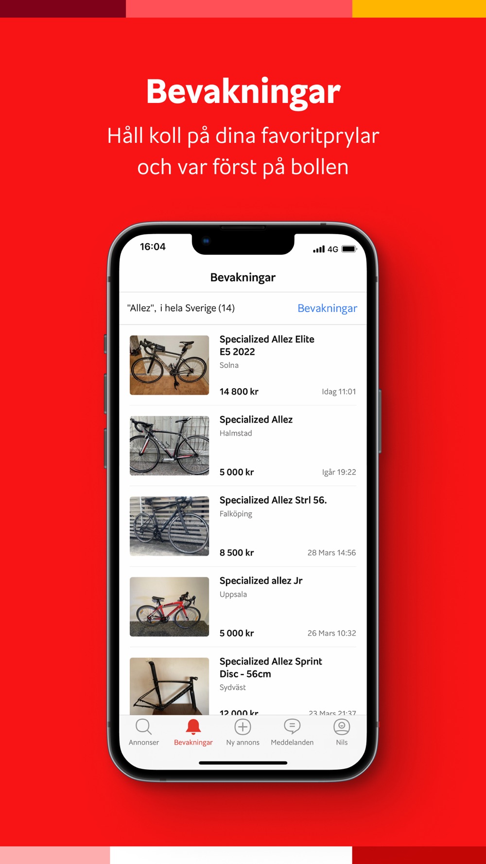 ◆ Få pushnotis när annonser som matchar dina bevakningar dyker upp