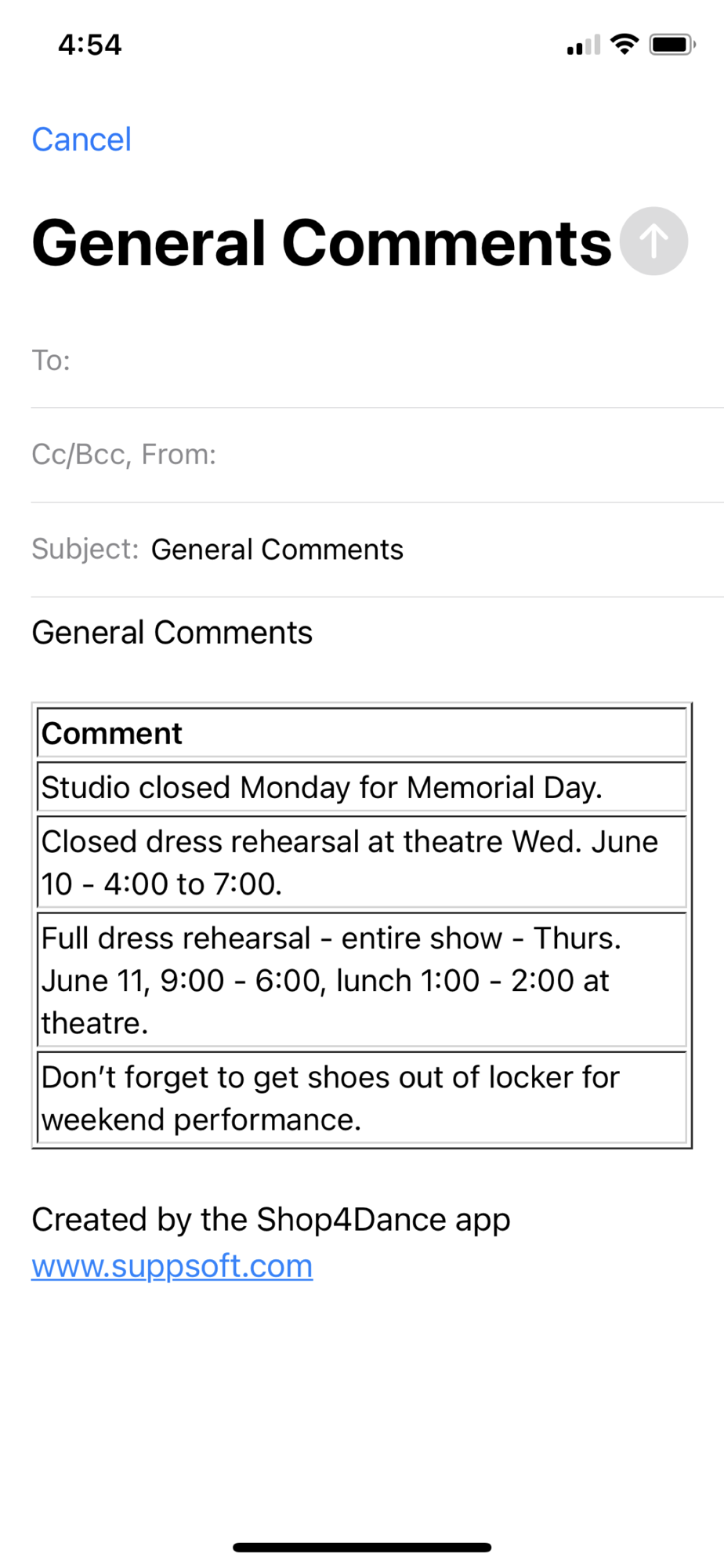 Shop4Dance app helps dancers SHOP and ORGANIZE supplies for a new dance season, competitions, and performances all year long! Easy to use! The comprehensive built-in databases do most of the work for you!
