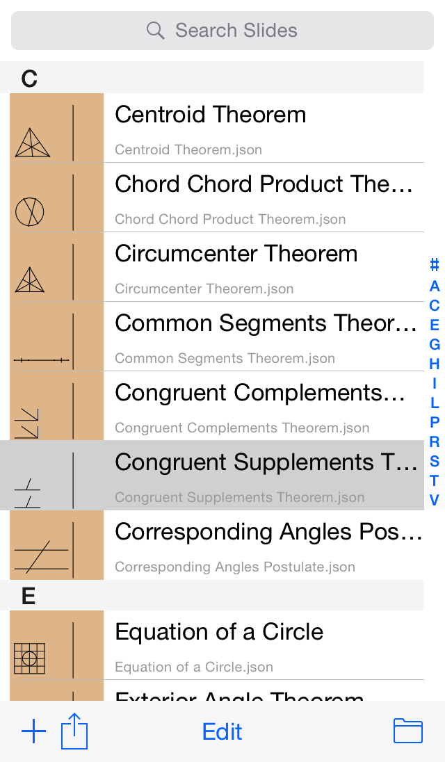 Reviewing geometry on the go has never been easier. Just swipe to a term to view its description and diagram!
