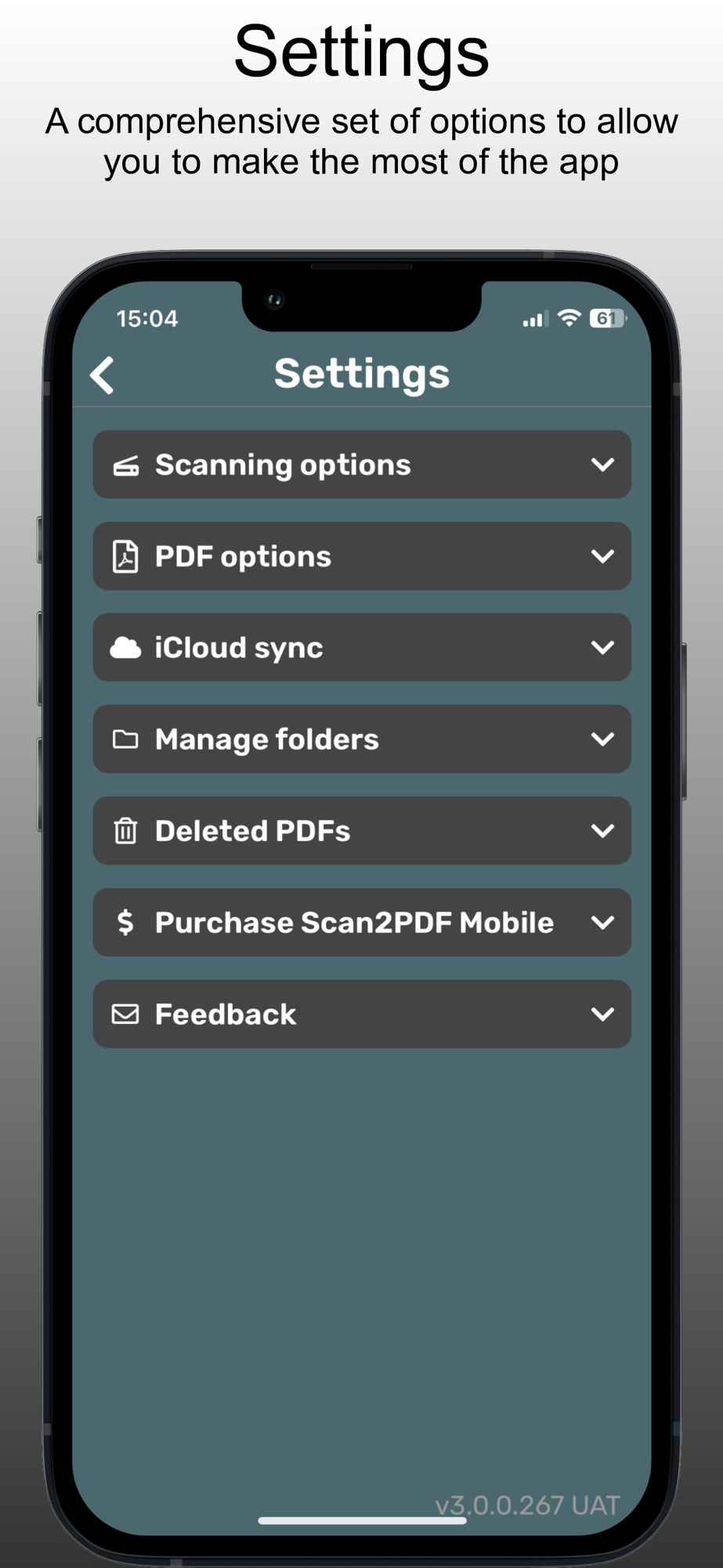 - Folder storage: organise your PDFs into folders with a simple folder system. This means you can store all your scanned PDFs in their logical places - eg bills, passports, letters etc.