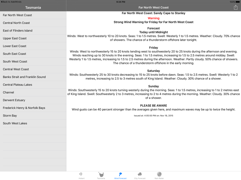 If you like HobartWinds - consider buying AUSWinds for the whole of Australia...