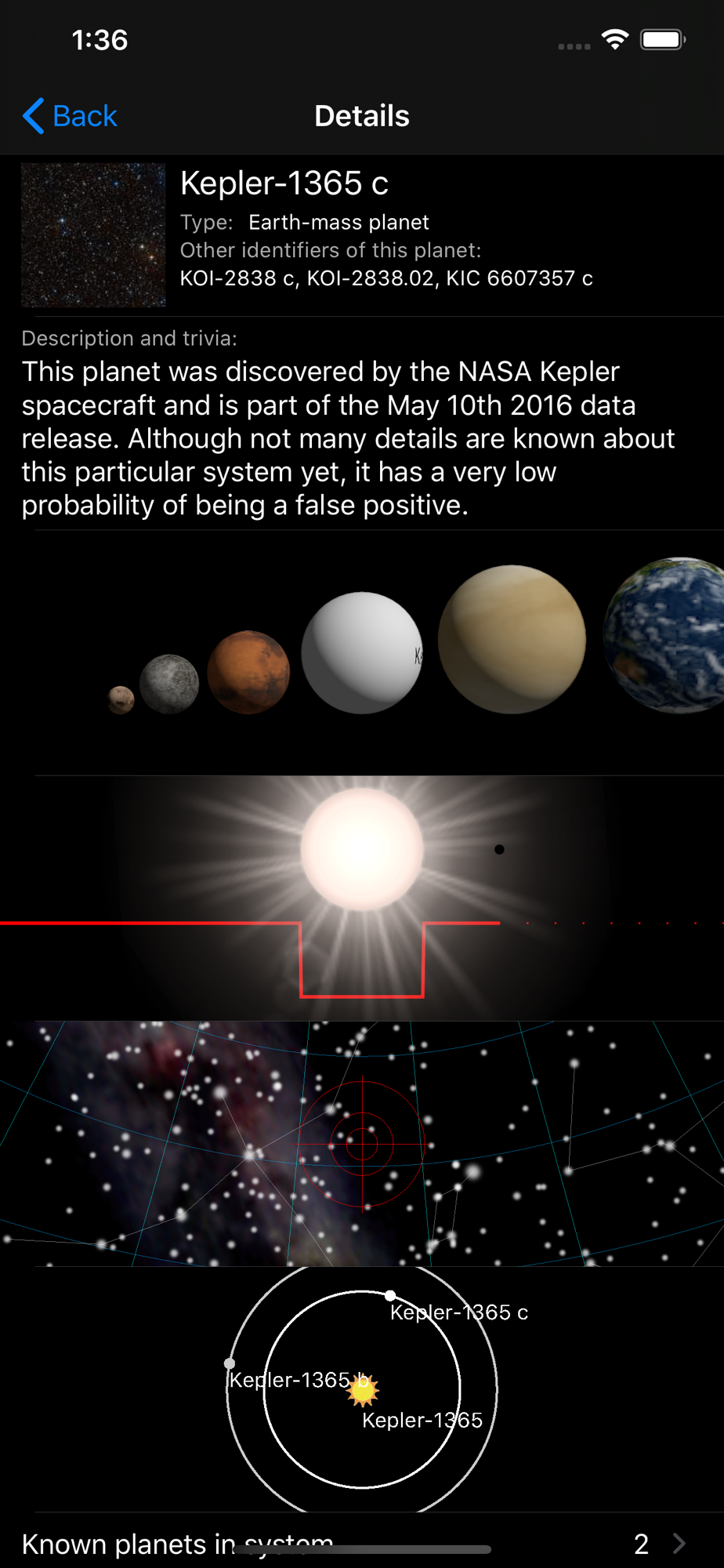 Exoplanets are planets orbiting stars beyond our own solar system. This app allows you to explore all discovered exoplanets, their measured physical properties, their location in the night sky, and their host stars. An interactive model shows you the entire observable universe, all the way from the surface of the Earth to the cosmic microwave background. This app has been developed by a professional astronomer.