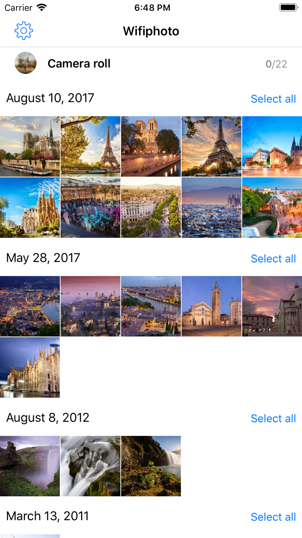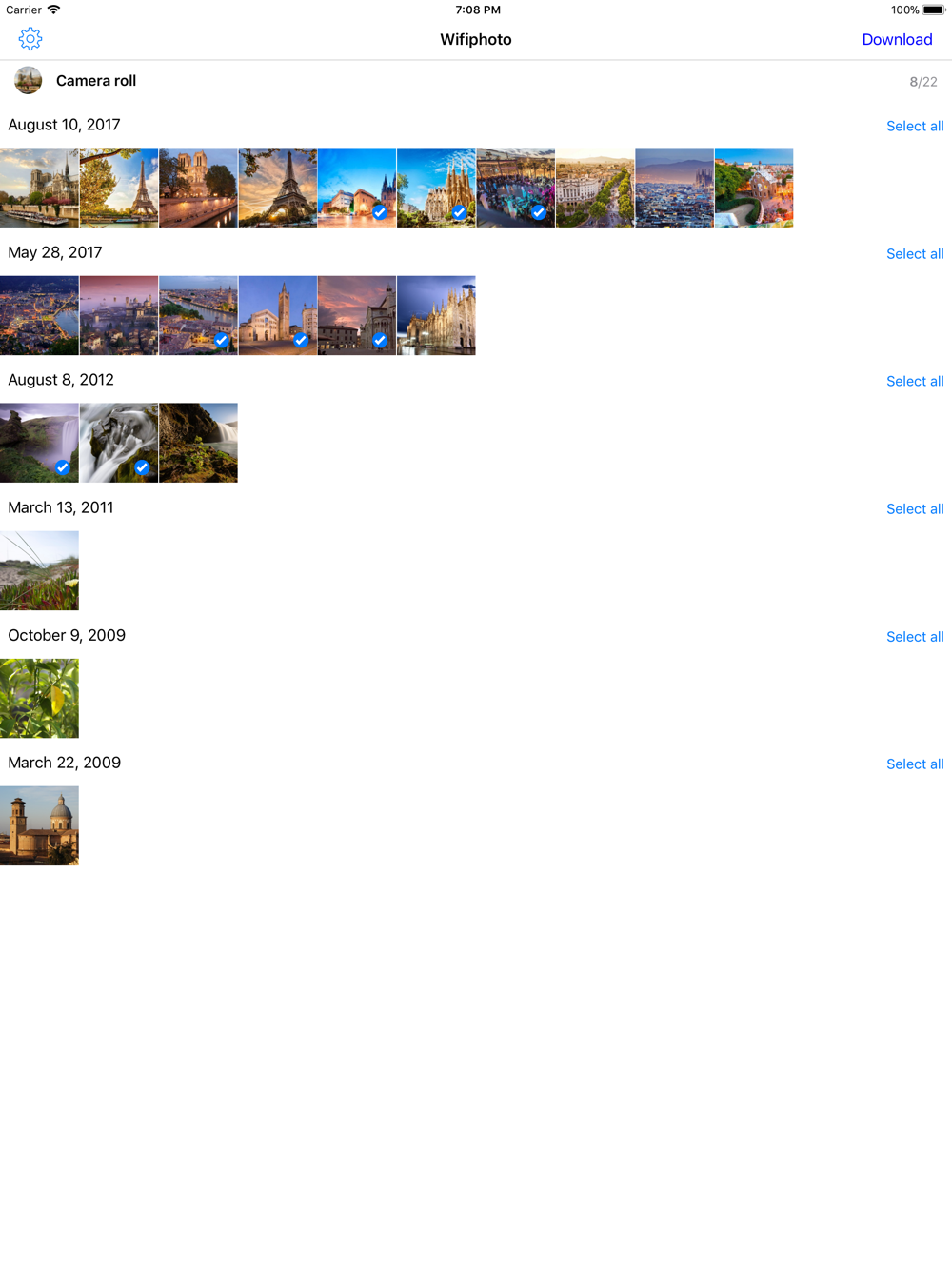 WiFiPhoto is the fastest way to download full quality photos from your Camera Roll or Photo Library to any computer over a WiFi network. No need for the dock or a usb cable, no compromise on quality. Just pick your photos or videos and point your browser to the web address displayed to instantly download a zipped archive with all your picks.