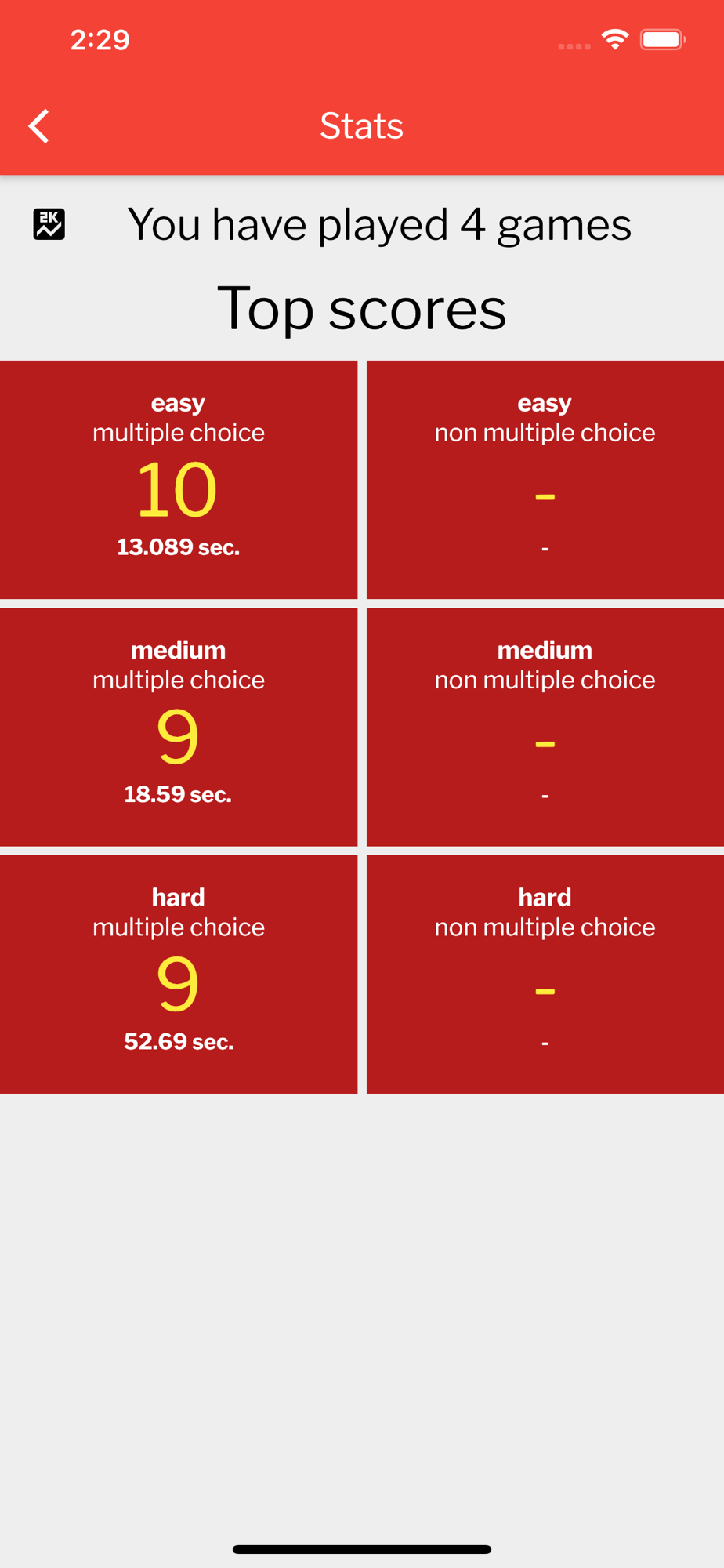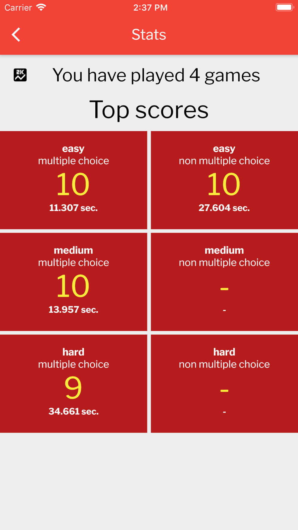 You can look at the tables to memorize them, and then you can use the game to test your learning. There are three levels - easy, medium and hard - and the game will recode your best results for each level.