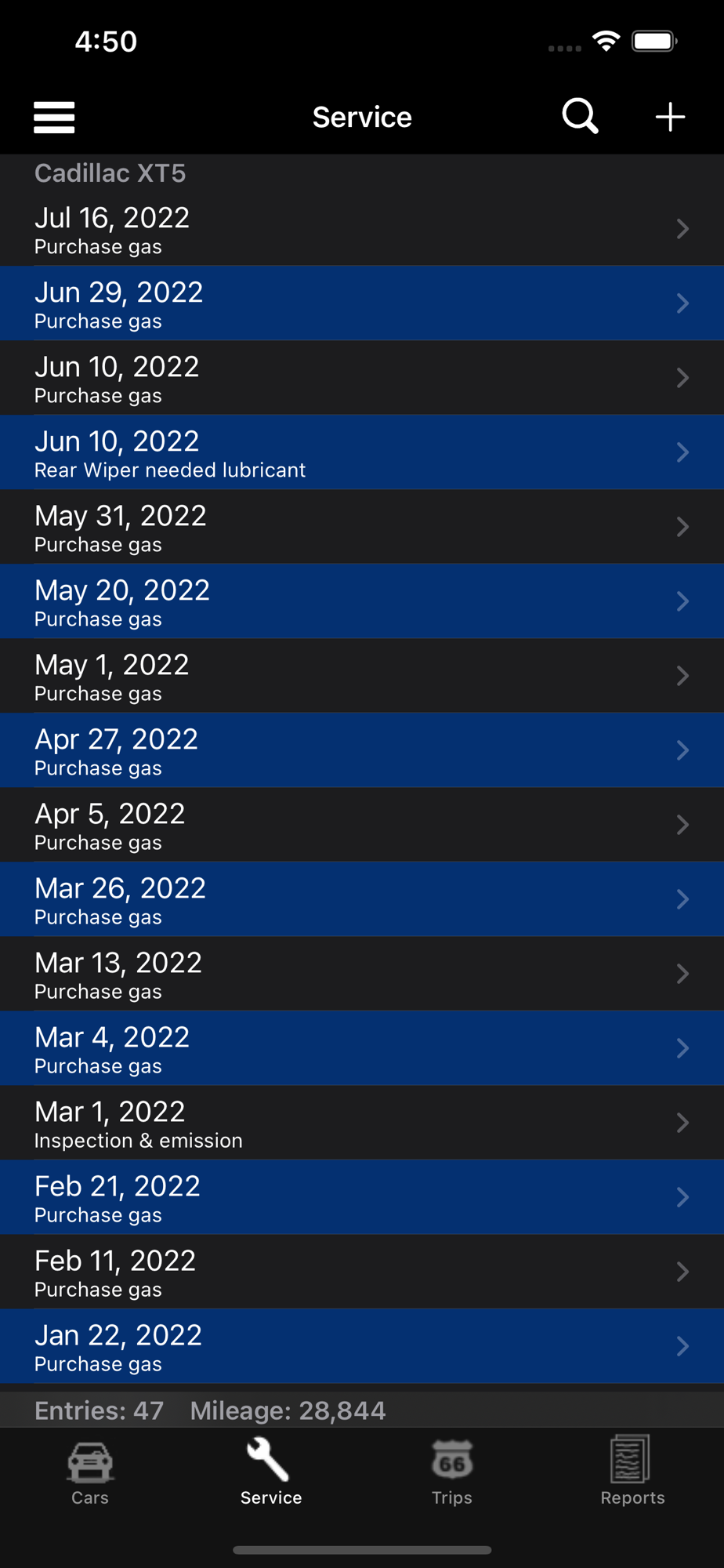 •Service category (Fuel, Maintenance, Oil Change, Supplies, Parts)