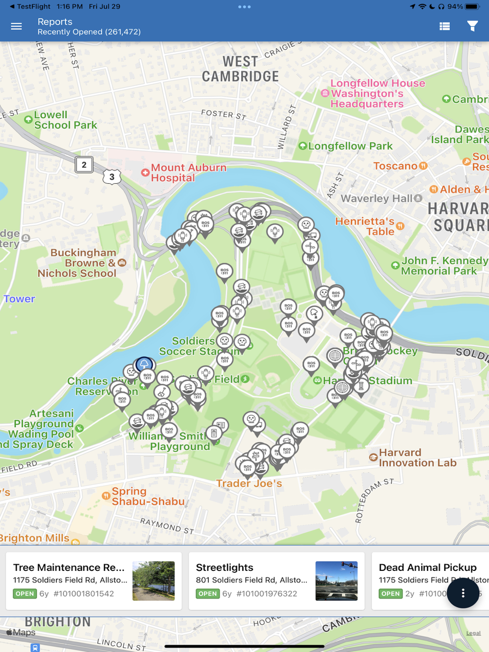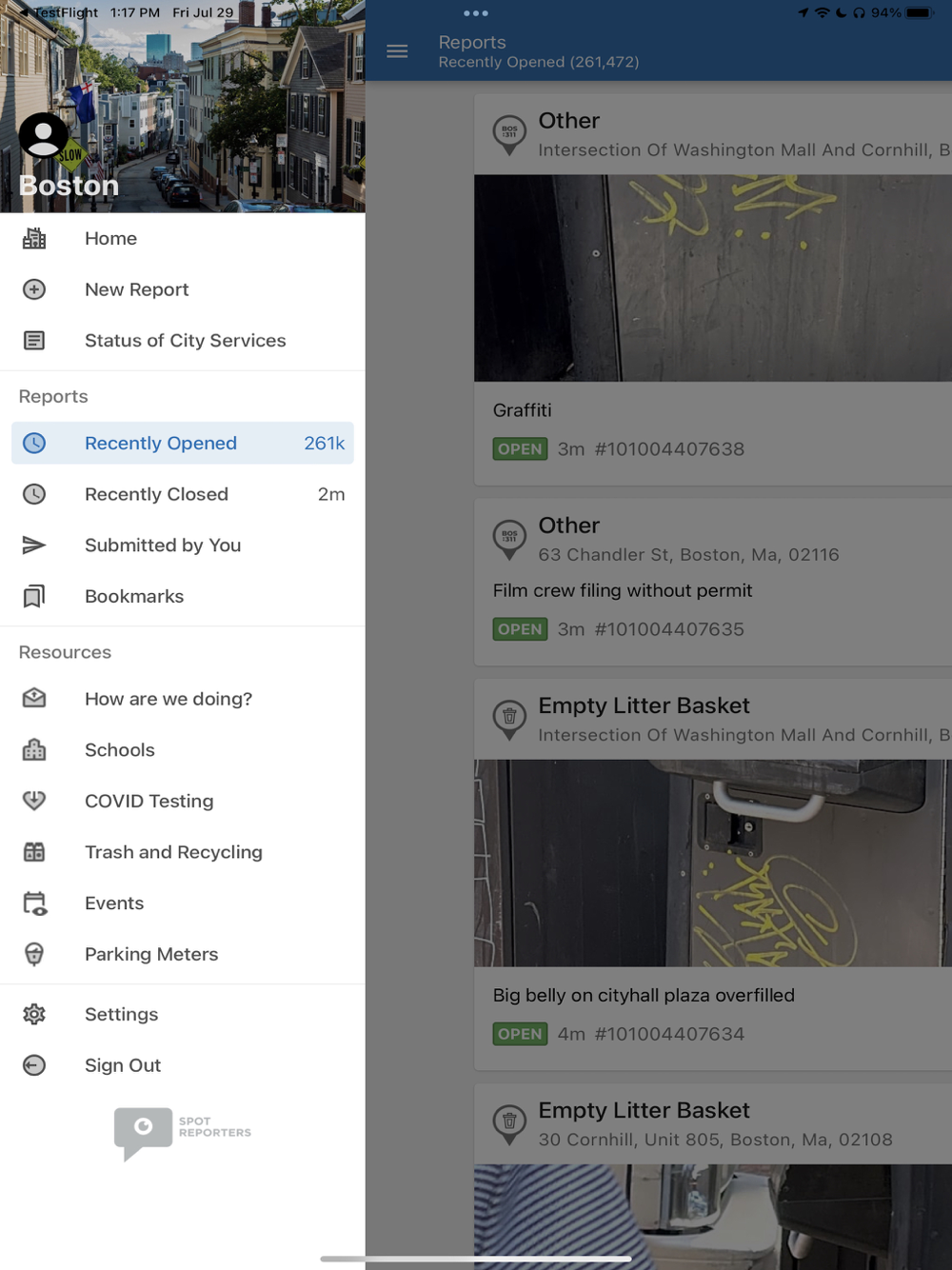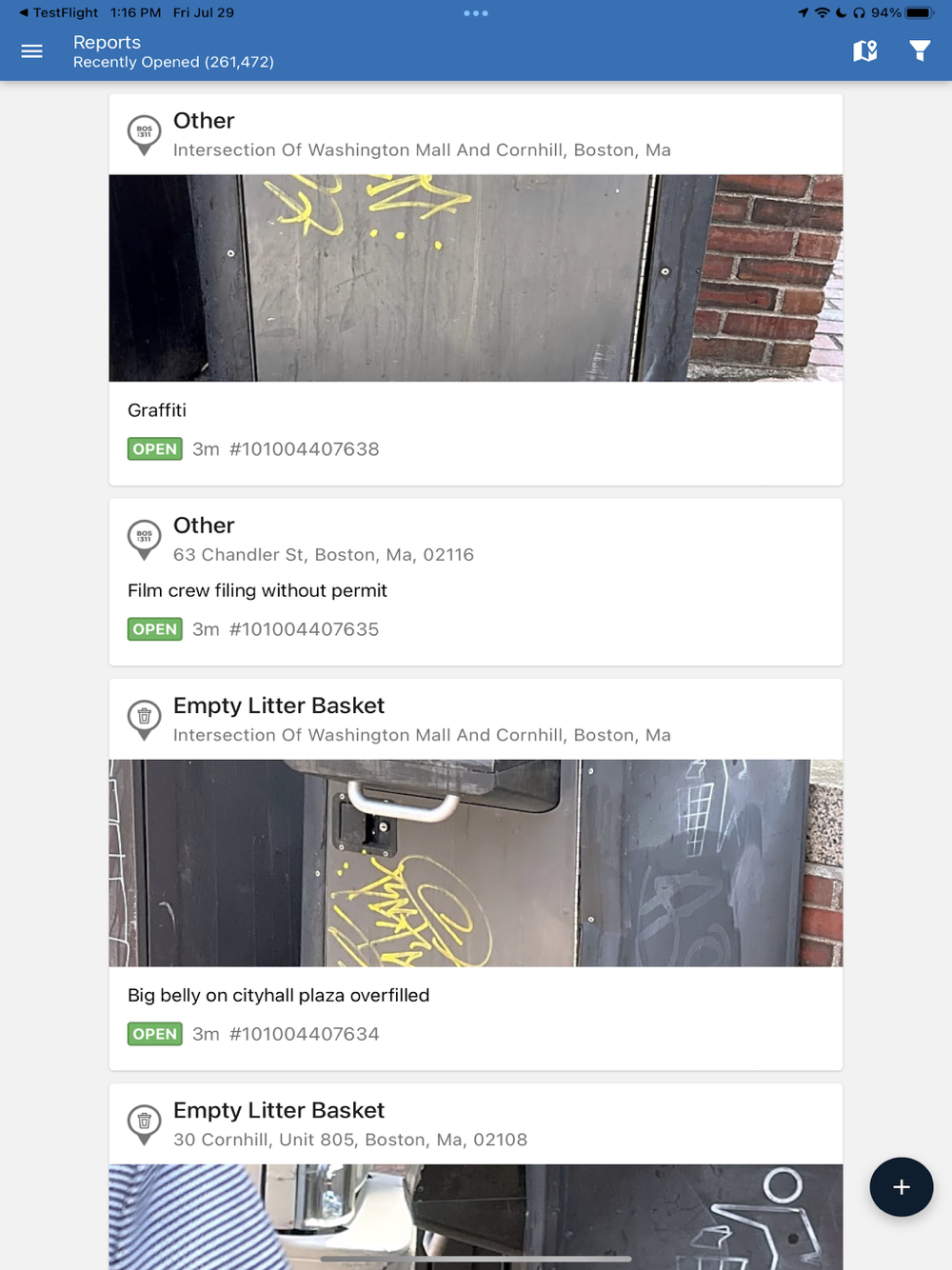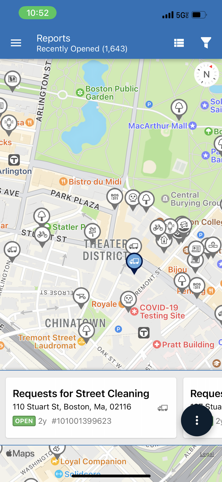 Reports are automatically fed into the City of Boston’s work order system to track and assign them to City staff. Through the app, you can follow the status of your request, as well as the statuses of other reports in the City. There’s even a map to get an easy overview of active reports in Boston.