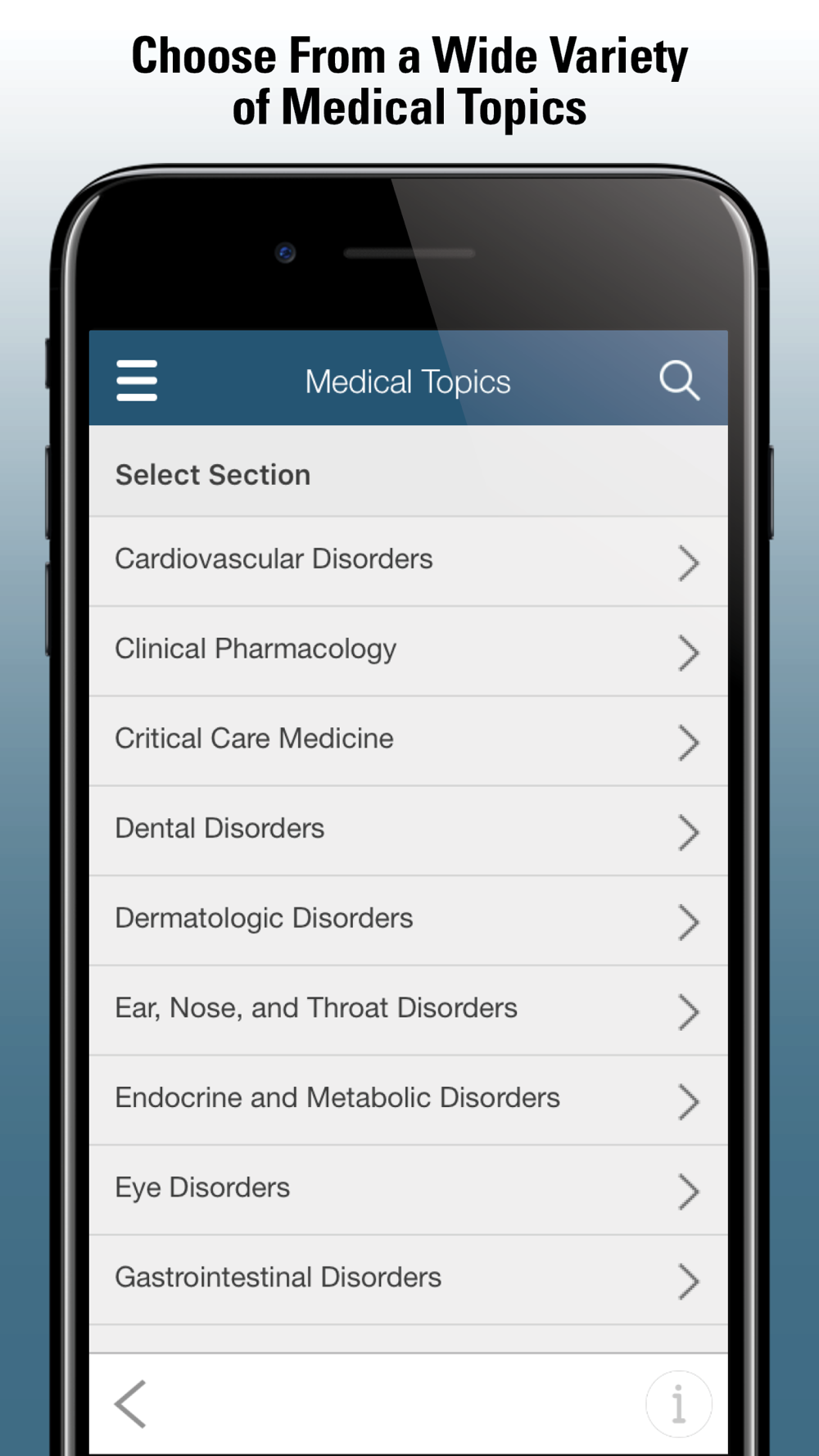 The amount of clinical information currently doubles every 18 months and the pace is only getting faster. Stay up-to-date with the Merck Manual Professional app.