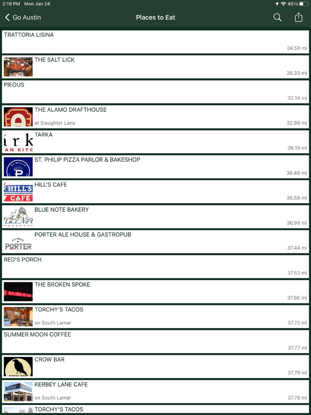 Each location will include text information, phone number, websites and social media links to help you to make the most of your time in Austin, Texas.