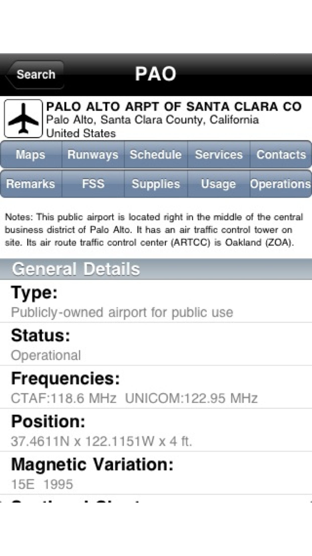 "Well Done! Very nice App! Pulls up information on the airport in just a couple of seconds. Could really save the day in a real emergency…"